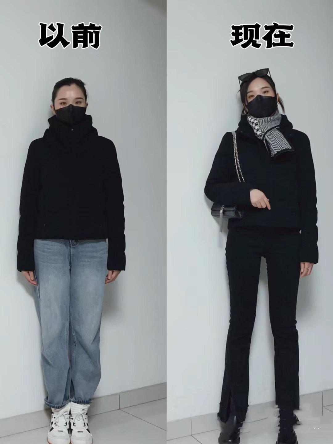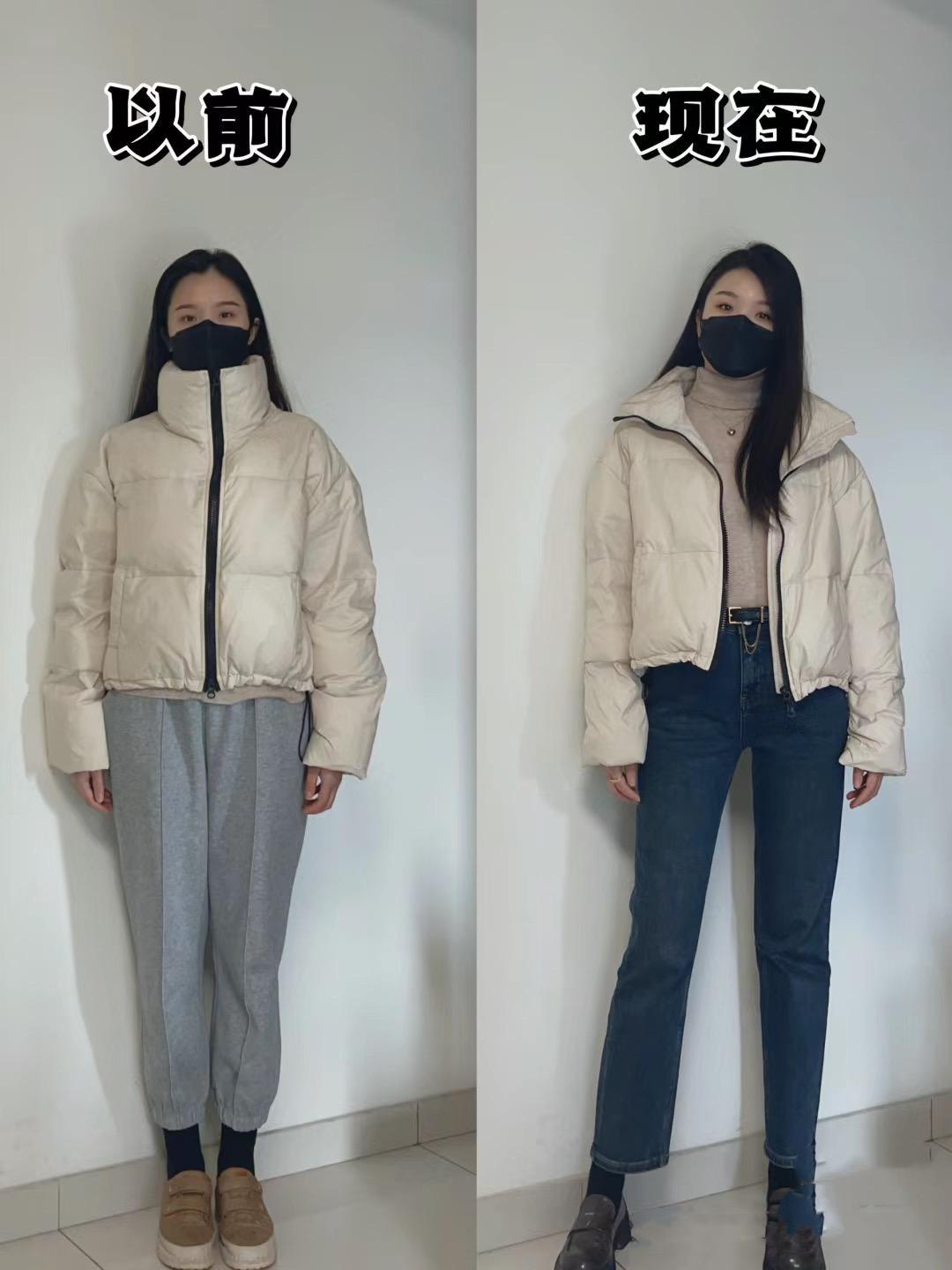 我們可以用短款的羽絨服,來搭配直筒的高腰牛仔褲。直筒牛仔褲適當修身的款式,讓我們可以擁有修長筆直的雙腿,搭配高領的針織衫也格外的溫柔。
