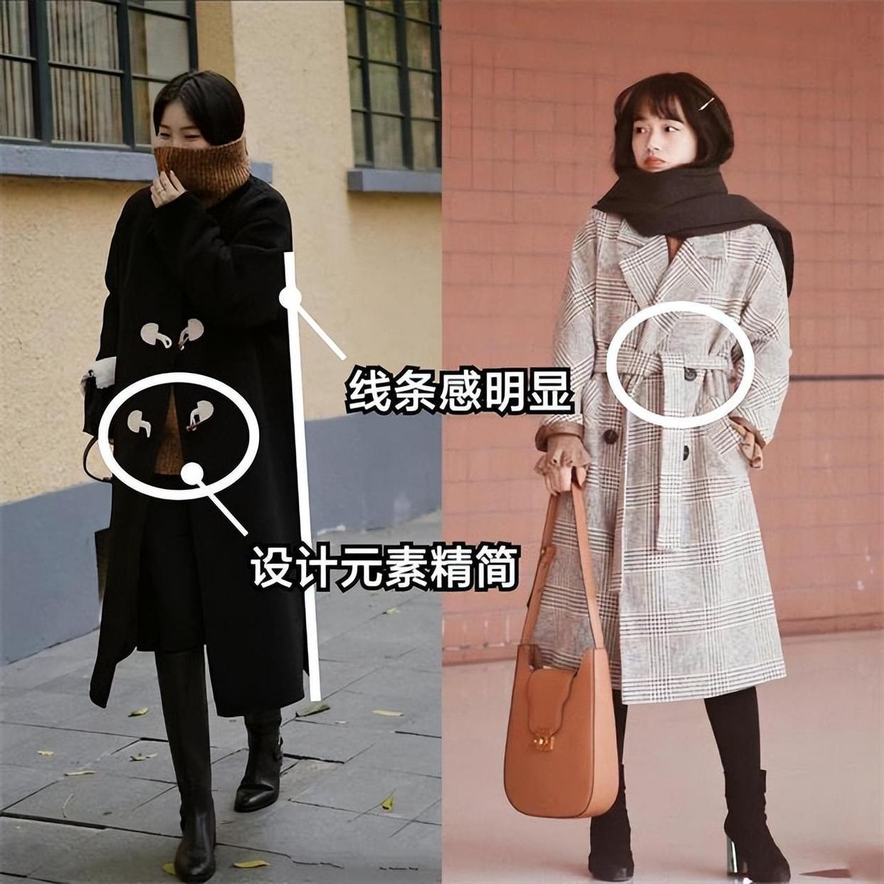我們選擇外套的時候,除了注意長度、還需要參考面料。面料相對硬挺的大衣,會更加的高級顯氣質,也可以表現出身體形態的挺拔美,相對而言大衣面料太軟榻、就會容易變形顯邋遢。