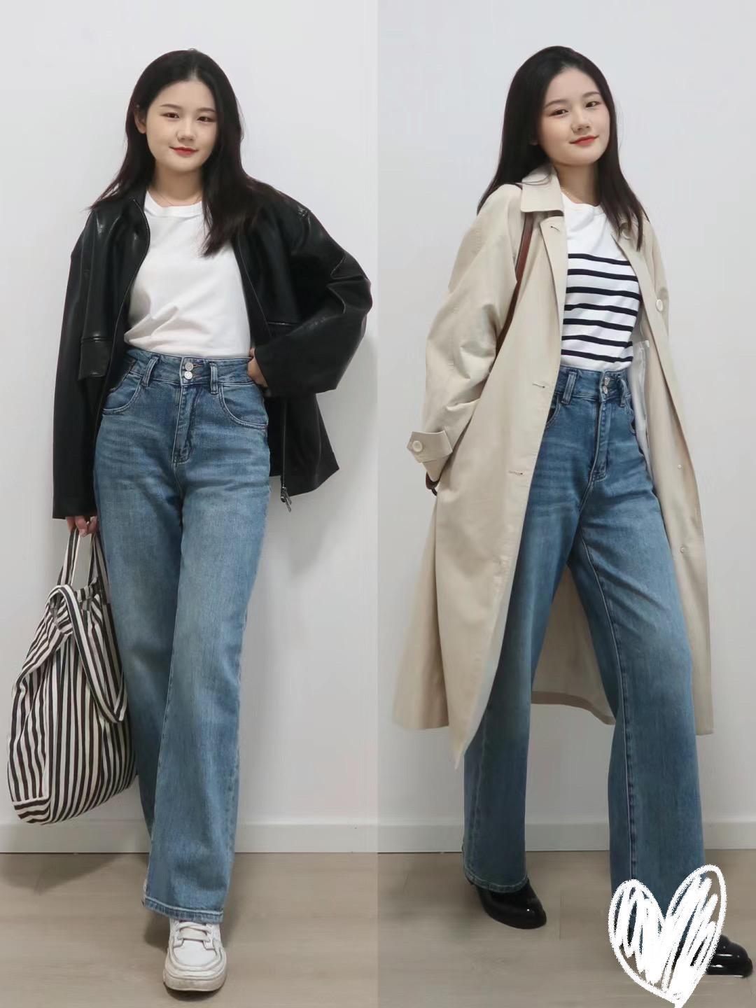 短款的小外套,可以選擇一種剛剛及腰的長度。高腰的直筒牛仔褲,可以選擇腰身更高挑一點的款式。高腰線的塑造,配合直筒的牛仔褲,可以顯得雙腿更加修長。