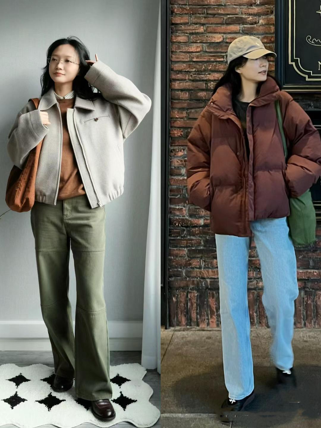 大地色與復古色之間,也有着千絲萬縷的聯繫。如果不懂得復古色的搭配,那麼選擇大地色就對了。燕麥色的夾克外套、棕色系的羽絨服都具備復古情懷。