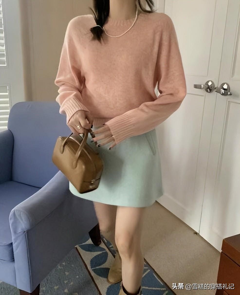 (1)柔和桃+月牙白=溫柔文藝穿搭