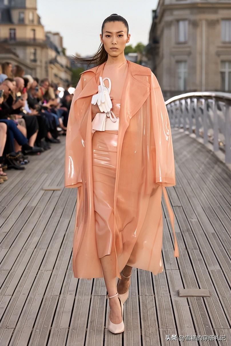 在秀場上我們可以看到很多輕盈面料和柔和桃結合的場面,輕柔的面料最大程度還原了柔和桃的毛絨觸感,這也是柔和桃爲什麼和輕盈面料如此般配的原因。