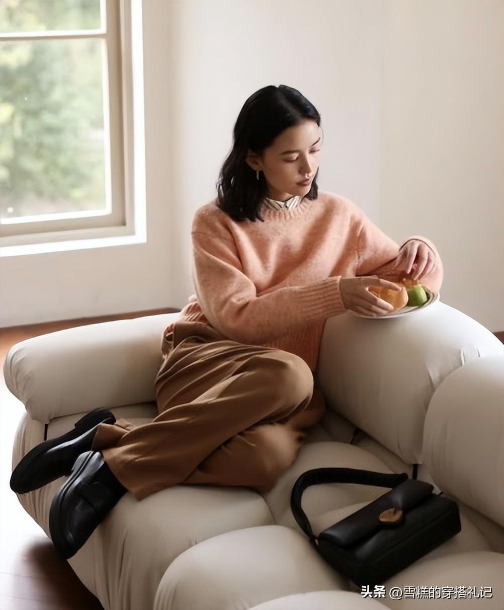 棕色系比起蜜桃粉來說是更爲沉悶的顏色,但是棕色很百搭,加上棕色本身自帶復古感,因此棕色+柔和桃的配色是一組很冬天的復古配色哦。