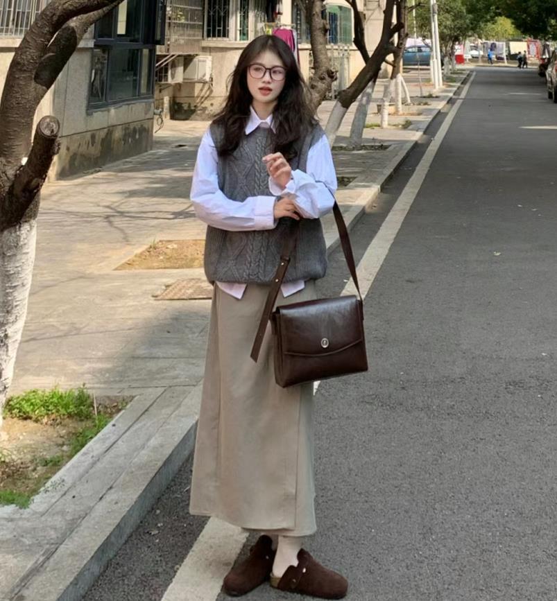 也可以試試這種基礎款毛衣馬甲,高級灰,可百搭了,疊穿白襯衫,一整個減齡,少女範十足。