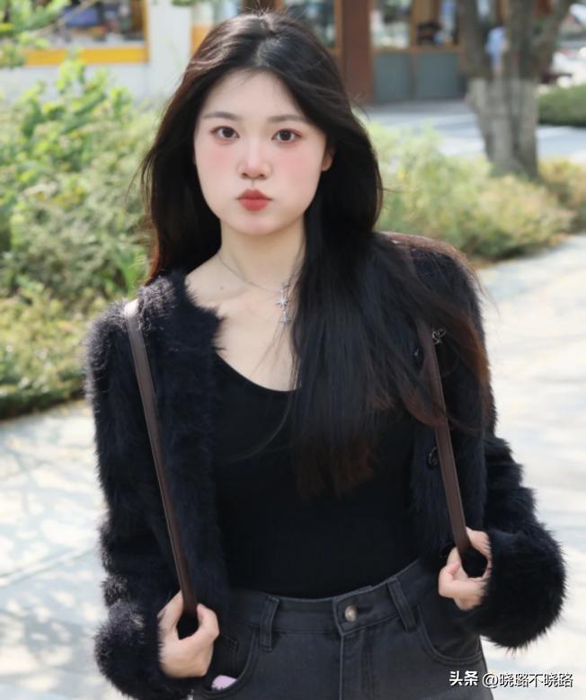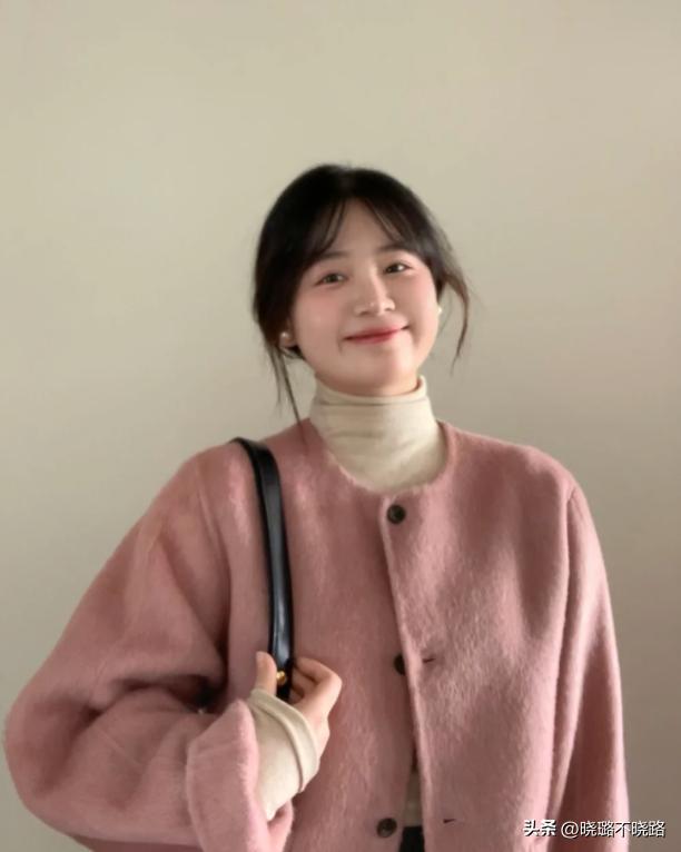 既然髮型妝容都說了,我們也可以順帶講講短圓臉在穿搭上的細節問題,在面臨冬季,儘量避開小領口和高齡的針織、打底衫系列,視覺上頸下空間變小,會顯得人很侷促。即便要搭配也要外搭一件大v領的單品來修飾頸部和麪部的線條顯瘦效果。