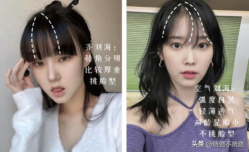 空氣劉海相較於厚重的齊劉海,顯得更爲輕盈,它對臉型的包容性更強,能有效地減齡並凸顯臉部的精緻輪廓。法式劉海則以其隨意的慵懶風格,輕鬆修飾臉部的不足,給人一種溫婉的氣質。