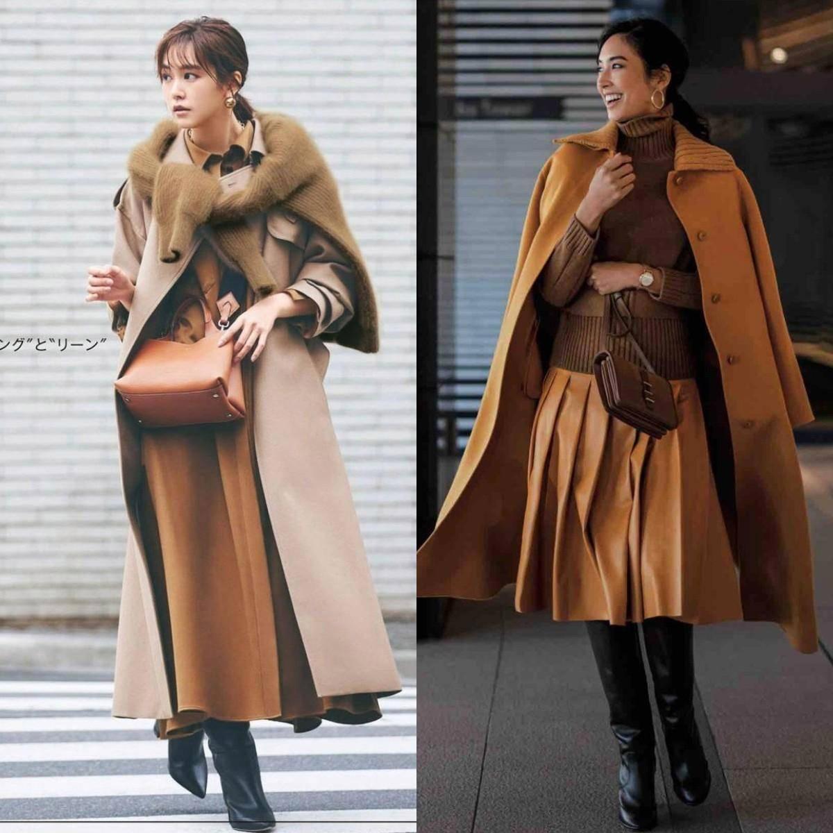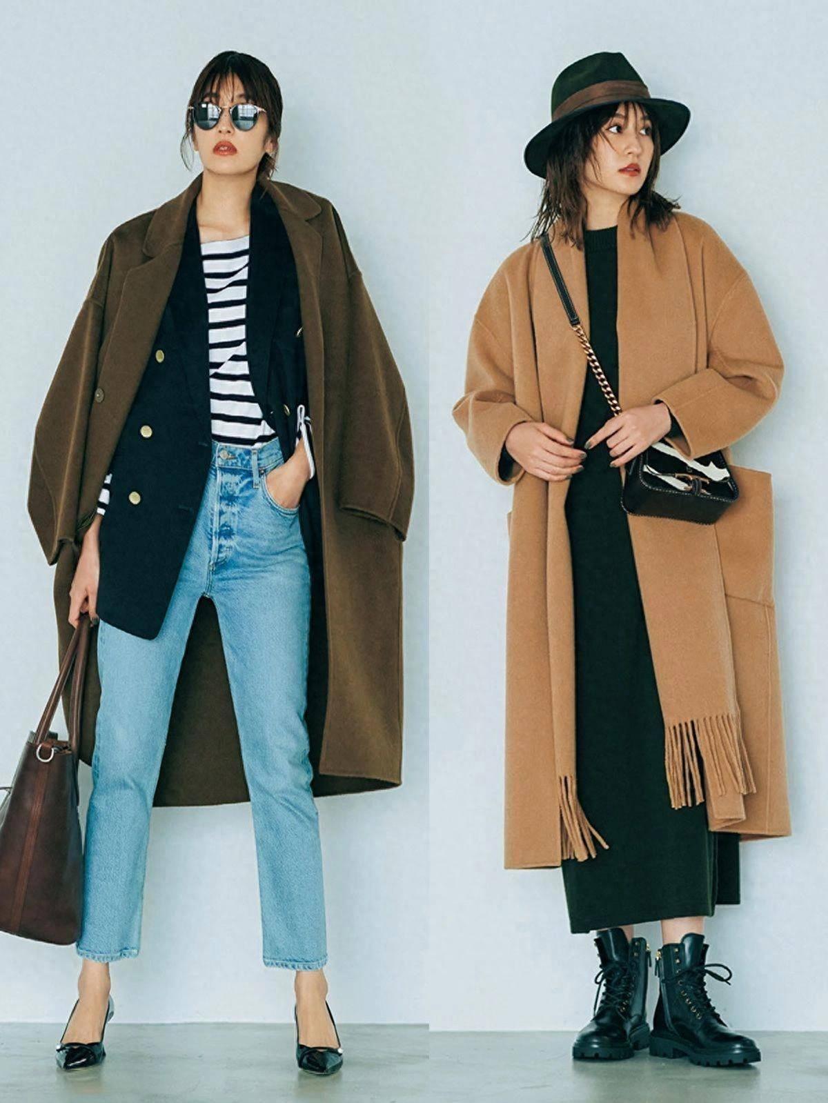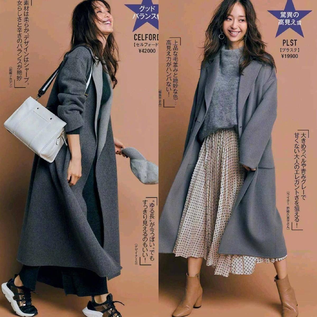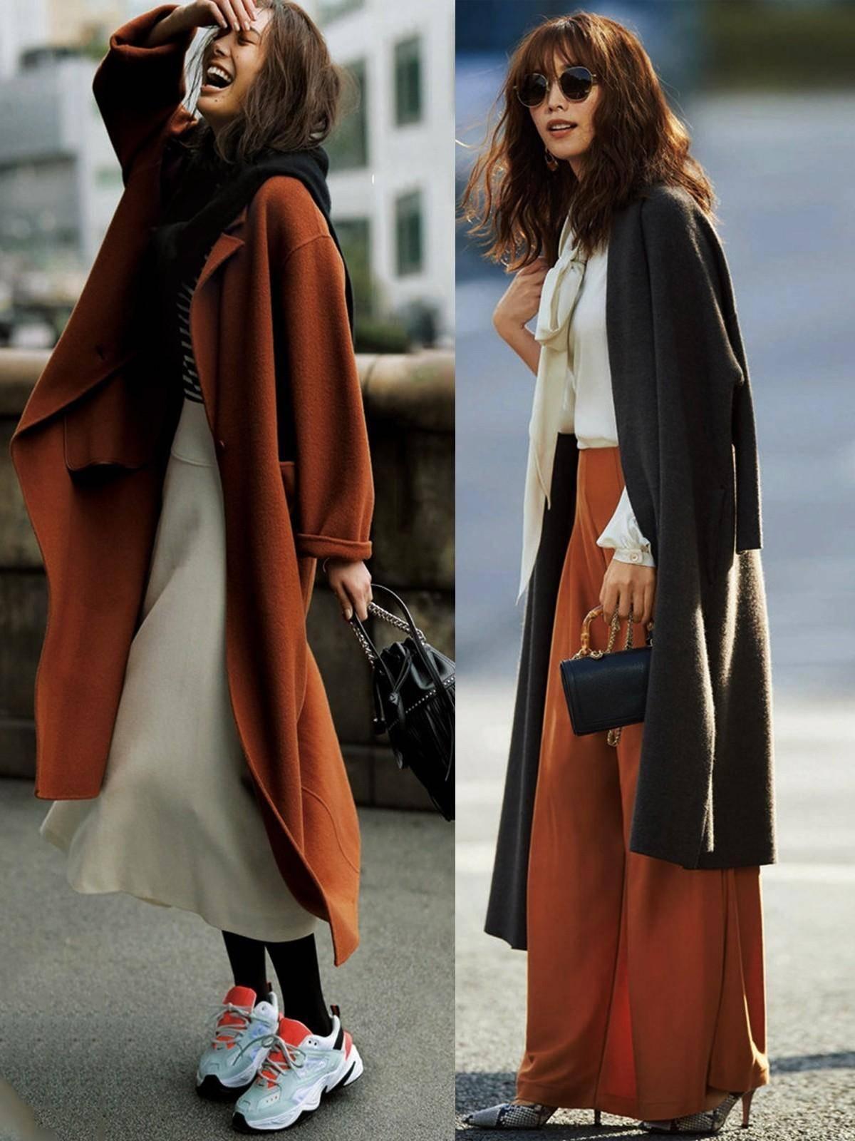 一件高級又體面的長大衣,既可以搭配裙裝也可以搭配褲裝。在日雜穿搭中,厚實又高級的長大衣,也是非常顯氣質的單品。