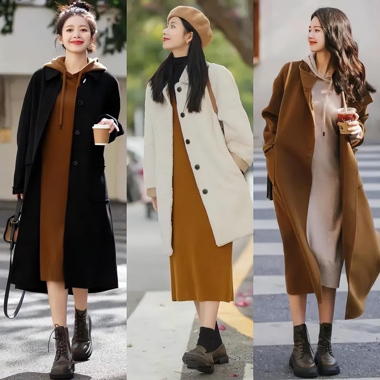 我們穿到小腿附近的長大衣,可以配衛衣裙或者針織連衣裙來穿着。適當修身的針織衫連衣裙,可以搭配經典的海西,或者棕色系,都更加顯瘦又耐看。