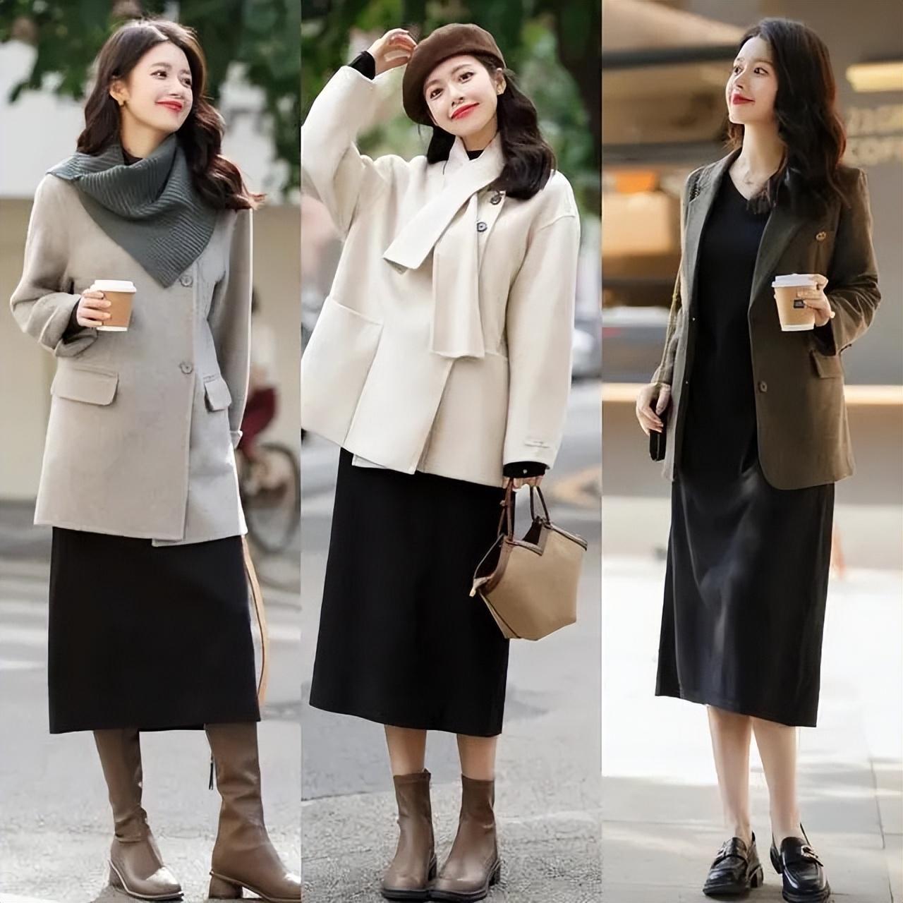 短款的毛呢外套,穿起來有一種更加利落大方的效果。即便是小個子的女人,也可以選擇短款毛呢外套來搭配黑色半身裙。A字形或者直筒的黑色半身裙,都會更加大方一些。