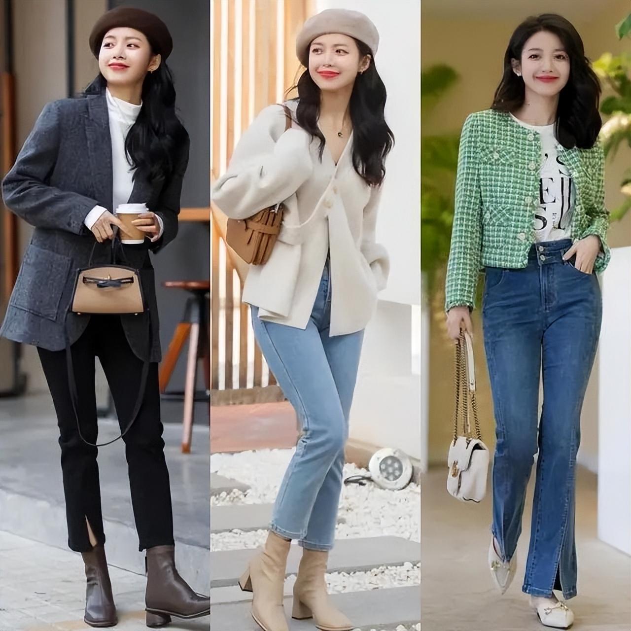 粗花呢的西服外套,是更加優雅大方的。粗花呢的小香風外套,是更加精緻貴氣的。不管哪一種外套,都可以搭配高腰的牛仔褲來穿着,尤其是九分的開衩牛仔褲,穿起來洋氣顯腿長。
