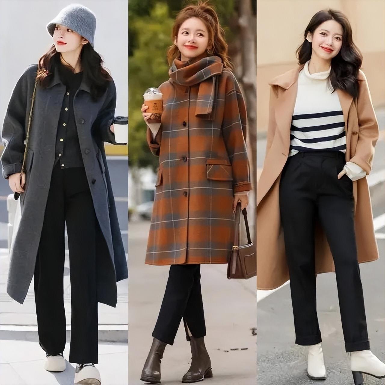 中長款的雙面呢外套,有一種更加大方顯氣質的效果。不管是經典的駝色大衣,還是格子大衣,冬天裏都可以配高腰的黑色直筒褲穿着,高級又顯瘦。黑色直筒褲,選擇九分褲型更加利落高挑。