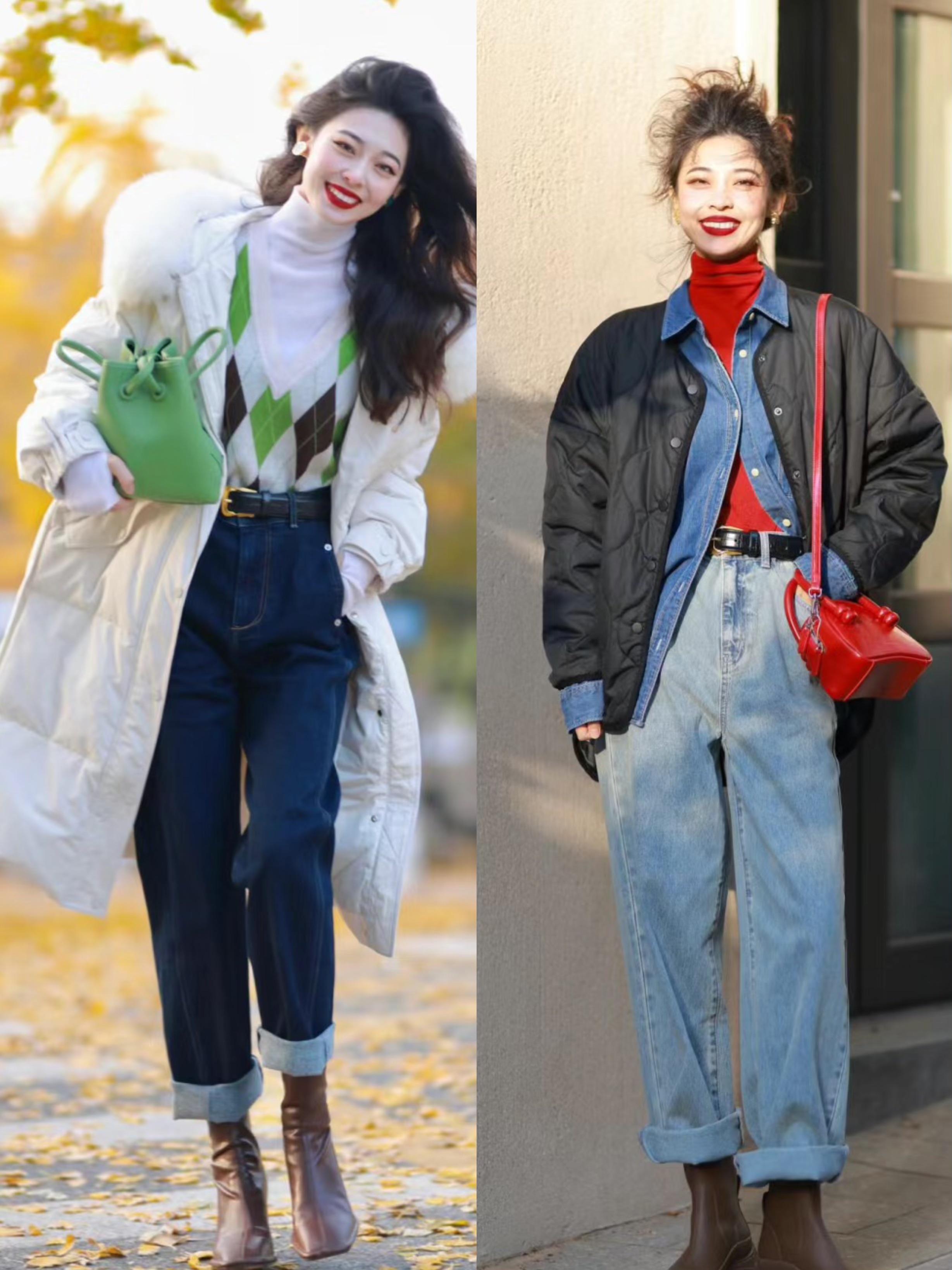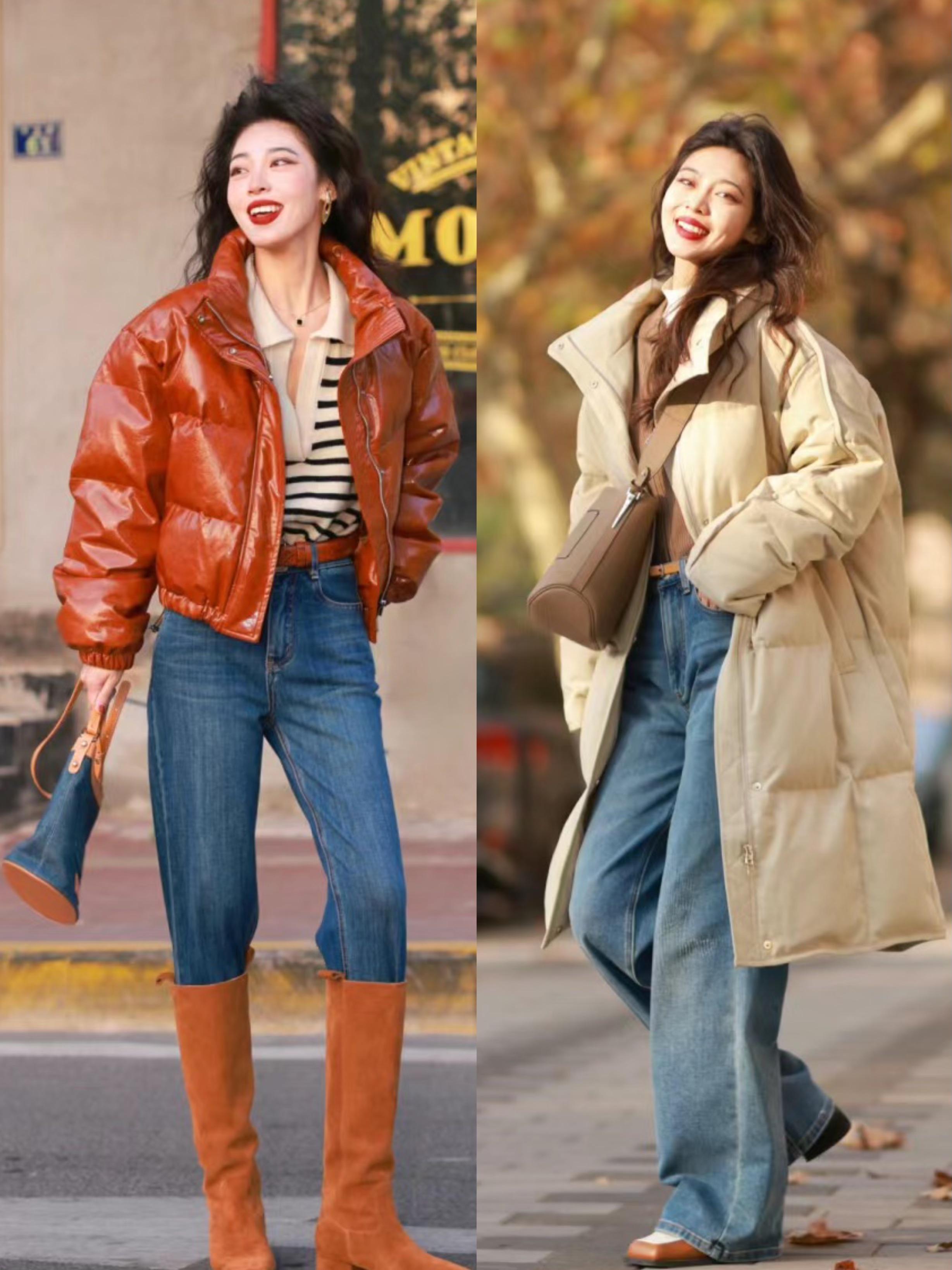 春節實用保暖穿搭,一定是“羽絨服+牛仔褲”,利落顯高、不挑人