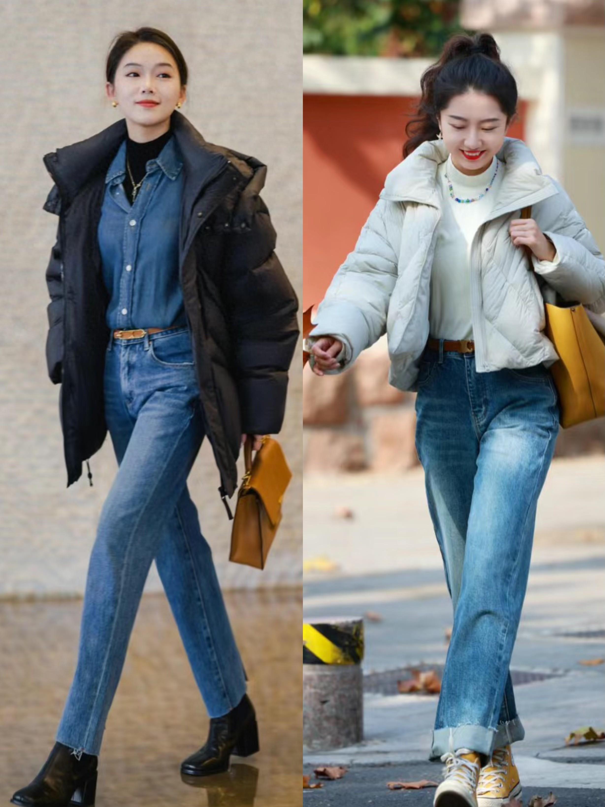 大方不挑人的穿衣方式,誰能不喜歡呢?不管是短款的羽絨服、還是長款的羽絨服,都可以搭配牛仔褲來穿着。