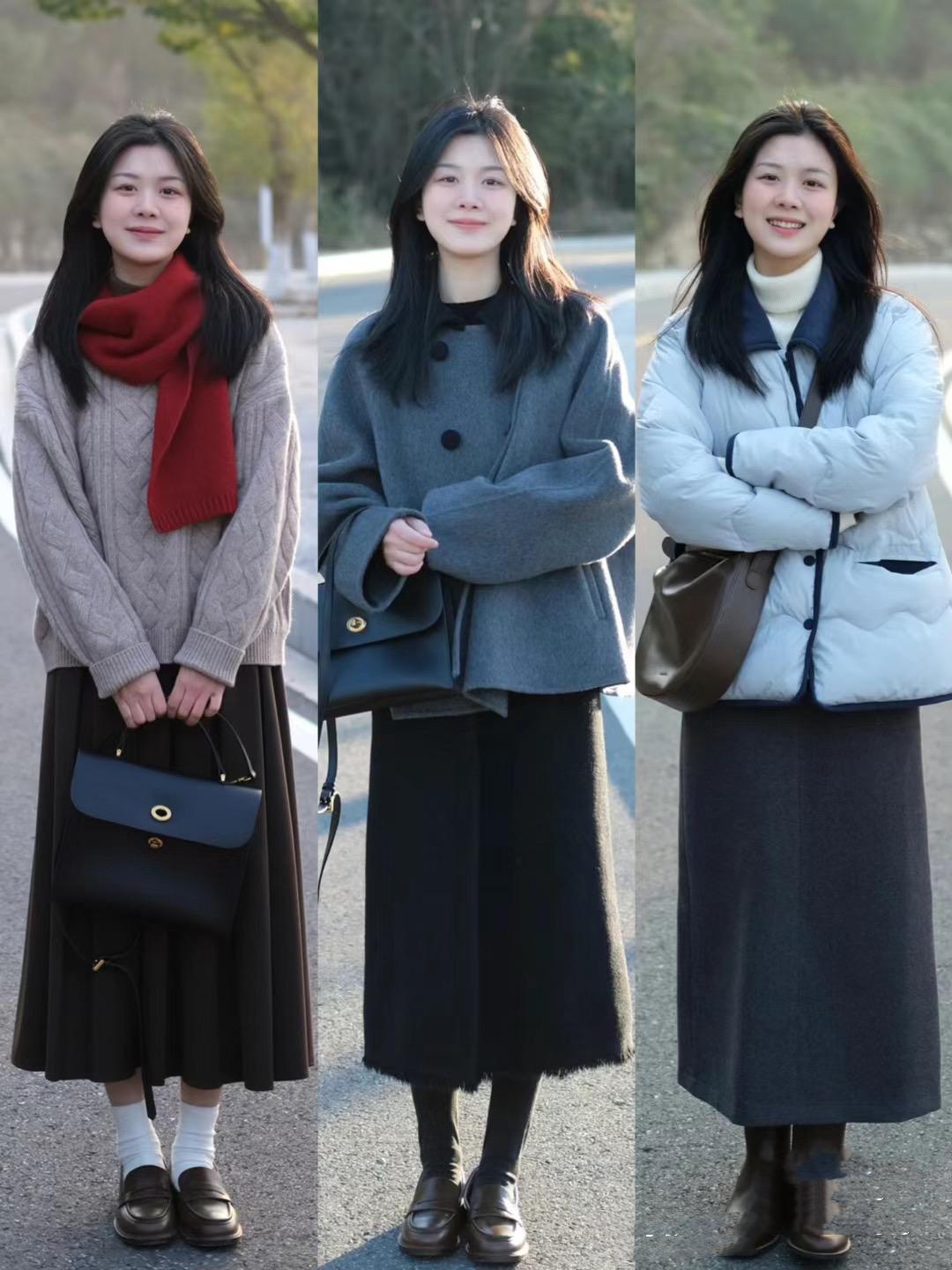 短款的外套與高腰的半身裙,也是非常協調的搭配。高腰的半身裙、可以選擇比較垂順的面料,挺闊又顯高。選擇半身裙的時候,可以搭配毛呢、或者燈芯絨面料,都更加保暖。