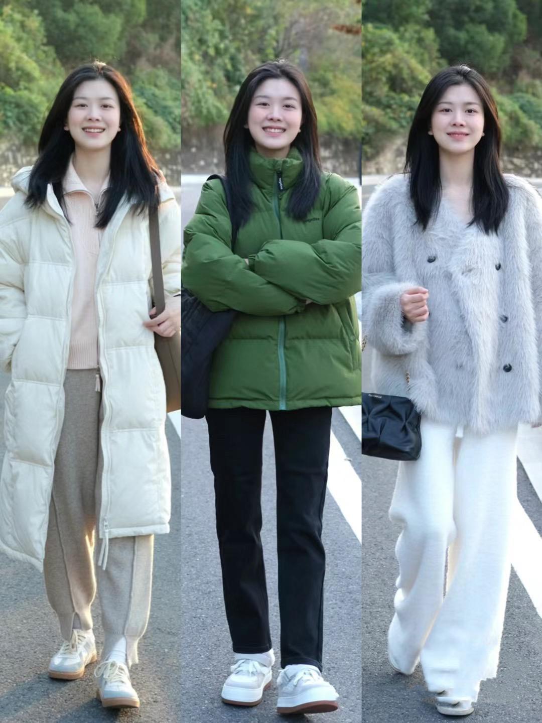 溫度比較低的北方地區,可以選擇相對厚實一點的外套。比如皮草外套、羽絨服,都可以更加保暖一些,這種厚重的外套儘量搭配直筒褲、可以擁有利落溫婉的美。