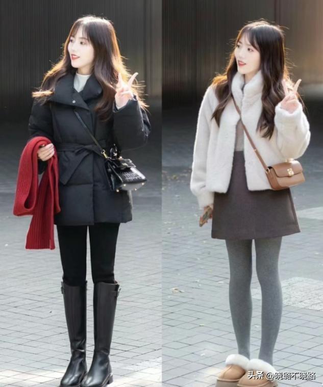 小個子女生如果身高不超過160 cm,冬季穿羽絨服或者棉服,長度設計都儘量過腰不過臀,這樣在視覺上可以藉助高腰款式的無痕褲配短襪,更好的去拉扯腿長在視覺上的佔比,穿短靴或者厚底鞋,身材比例纔會不喫虧。