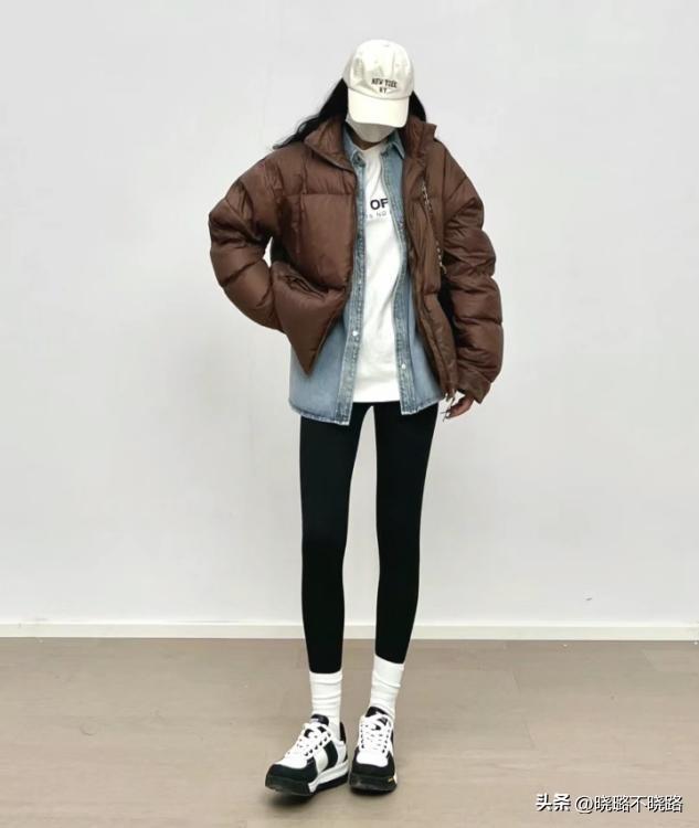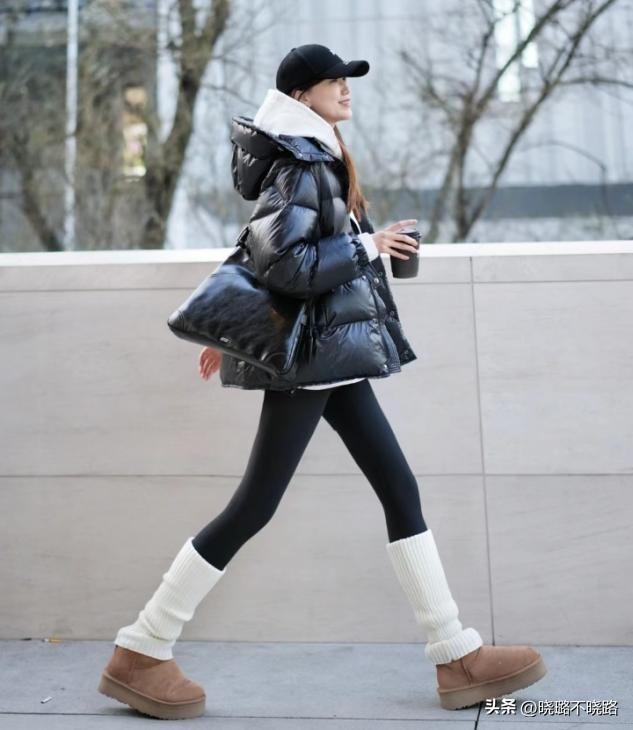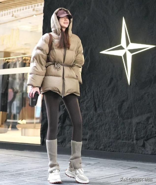 帽子和短襪的小物件,可以填補視覺空白,豐富冬服和無痕褲的組合視覺層次感,單穿羽絨服的造型不喫虧。