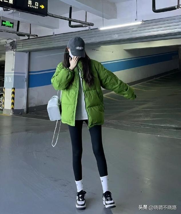 2.森系風格搭配,牛油果綠色配羽絨服,很有看點