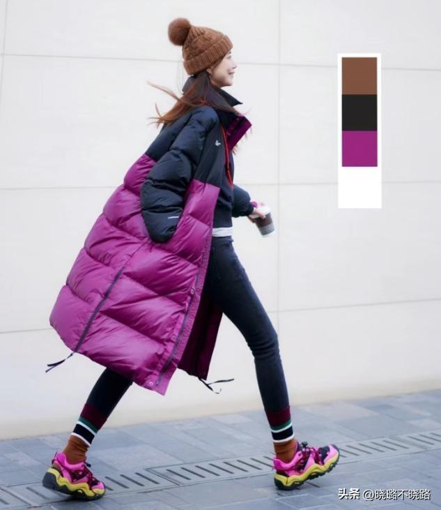 羽絨服本身的款式很多時候都比較寬,衣袖和肩膀可以對比身材輪廓,無痕褲把握分寸,縮減腿型寬度,才能夠顯瘦。