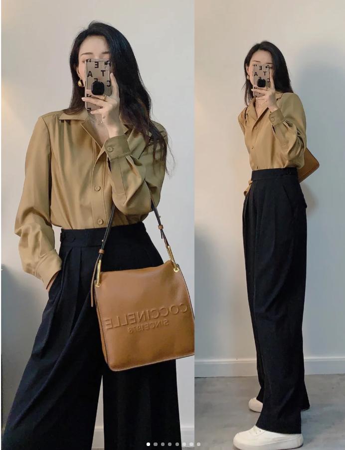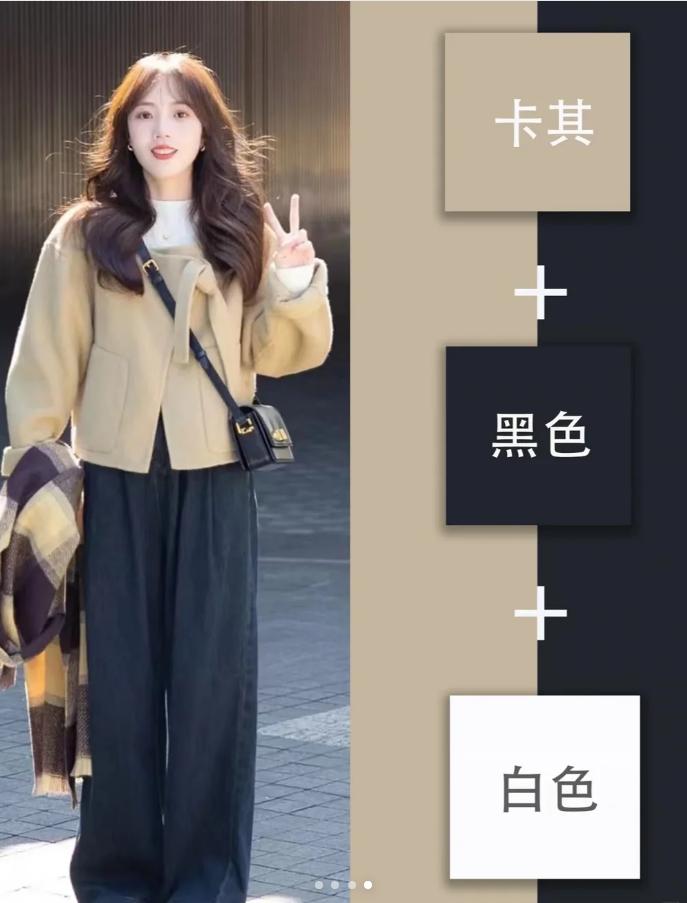 經典色三兄弟組合,百搭又自然,白色的內搭作爲打底,卡其色的外套與黑色褲子,這種搭配可以讓你的整體造型更加出衆。