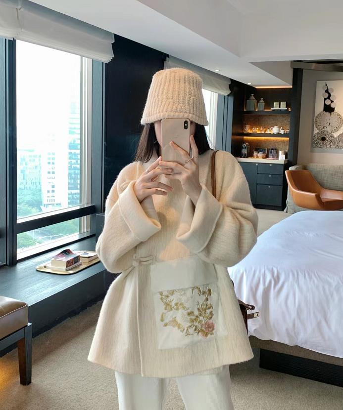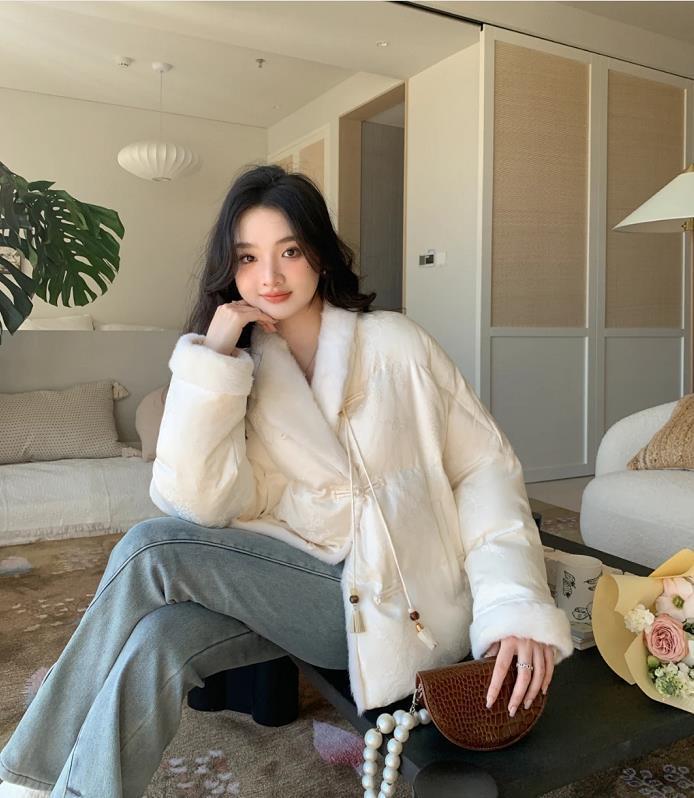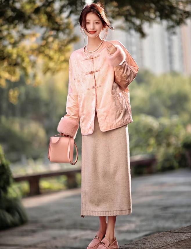 過新年給自己選一件新中式外套吧,不喜歡大紅大紫的靚麗顏色,就選擇這種淺色系。毛絨的款式,保暖性更佳。