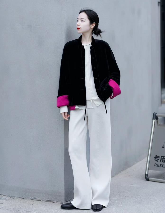 不知從什麼時候開始,新中式的穿搭已經在時尚圈裏卷席起來了,大概,這種風格也只有中國女人才可以穿出它的韻味。質感和麪料都很好的新中式外套,搭配黑色打底就很保暖。