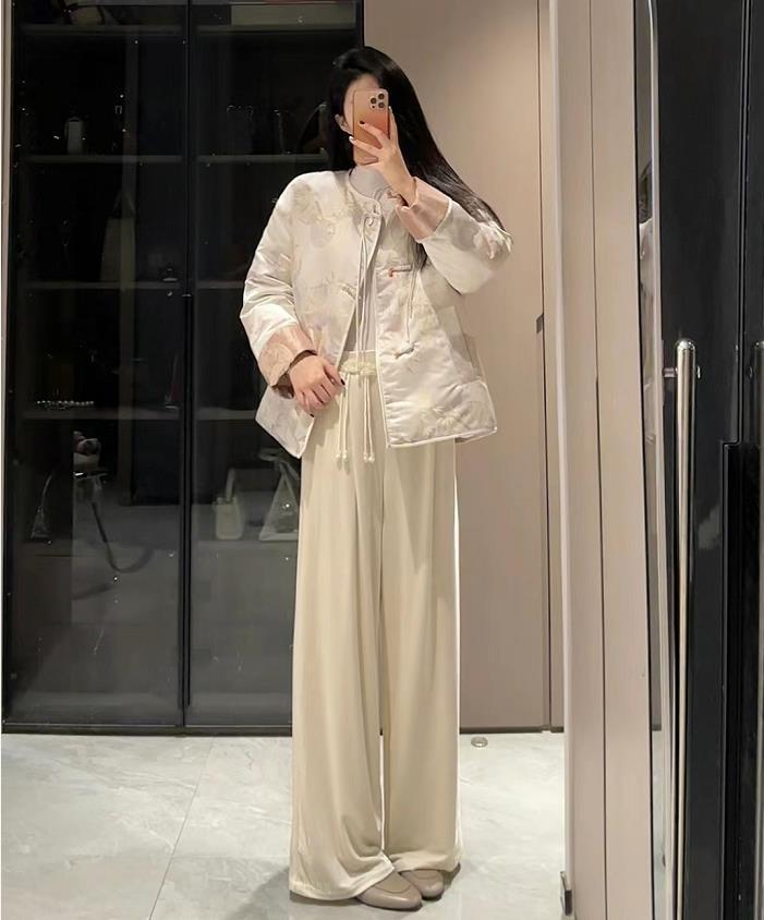 喜歡這一身新中式的穿搭,顏色很乾淨,穿起來也很百搭,外套色調雖然很素雅,但一點都不影響它穿得好看。垂墜感十足的闊腿長褲,不僅顯瘦,還瞬間將雙腿比例拉長。