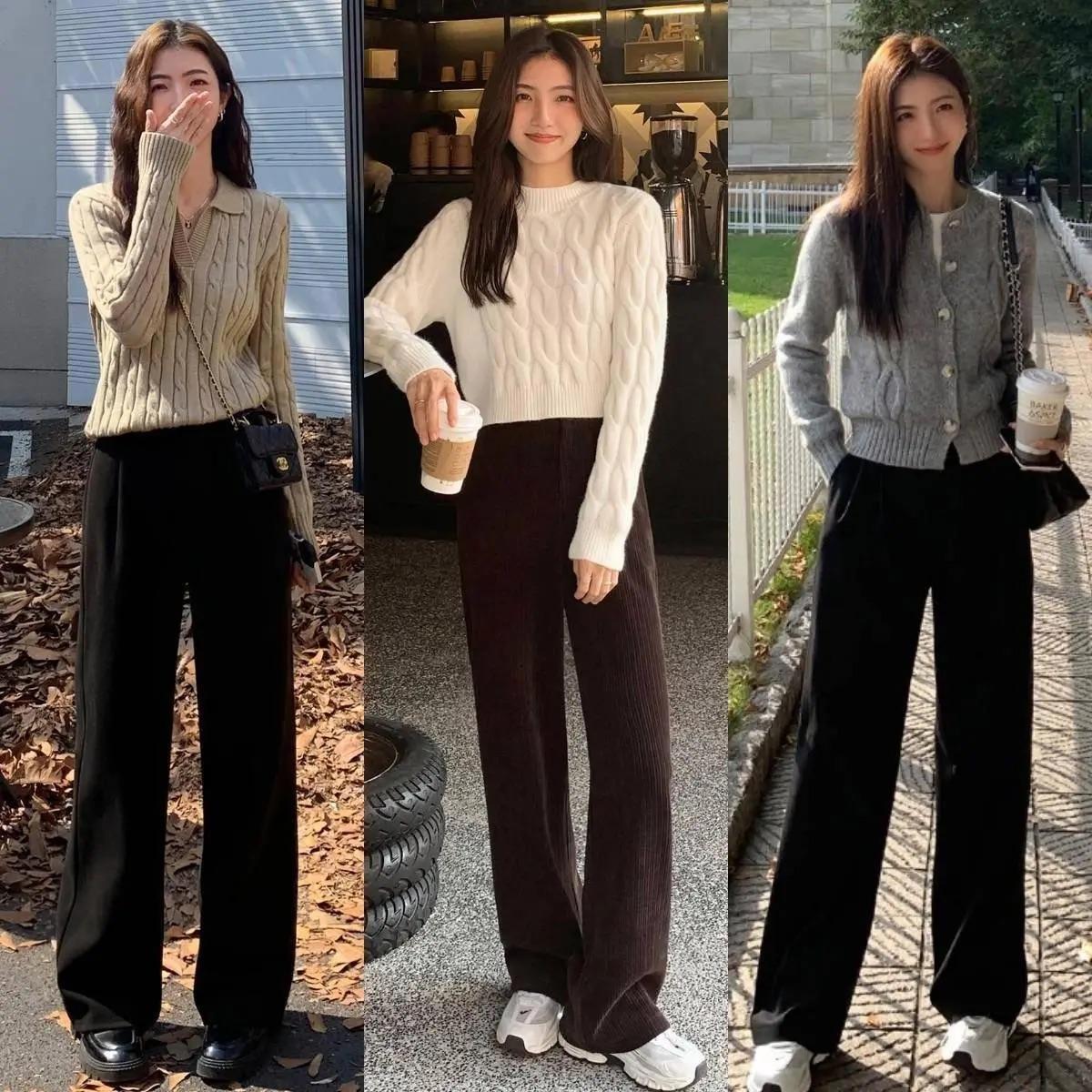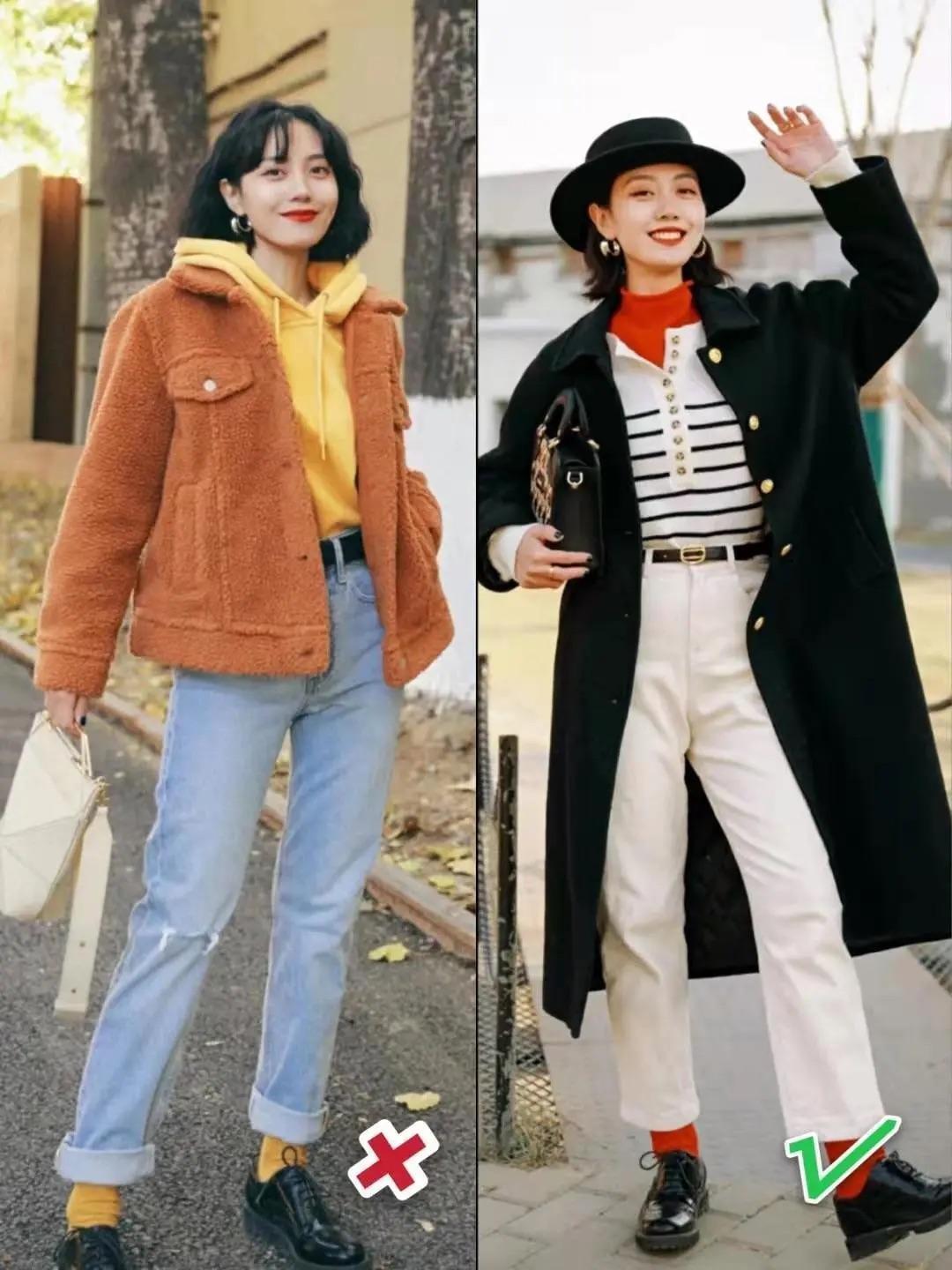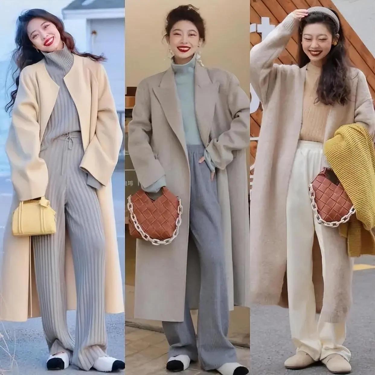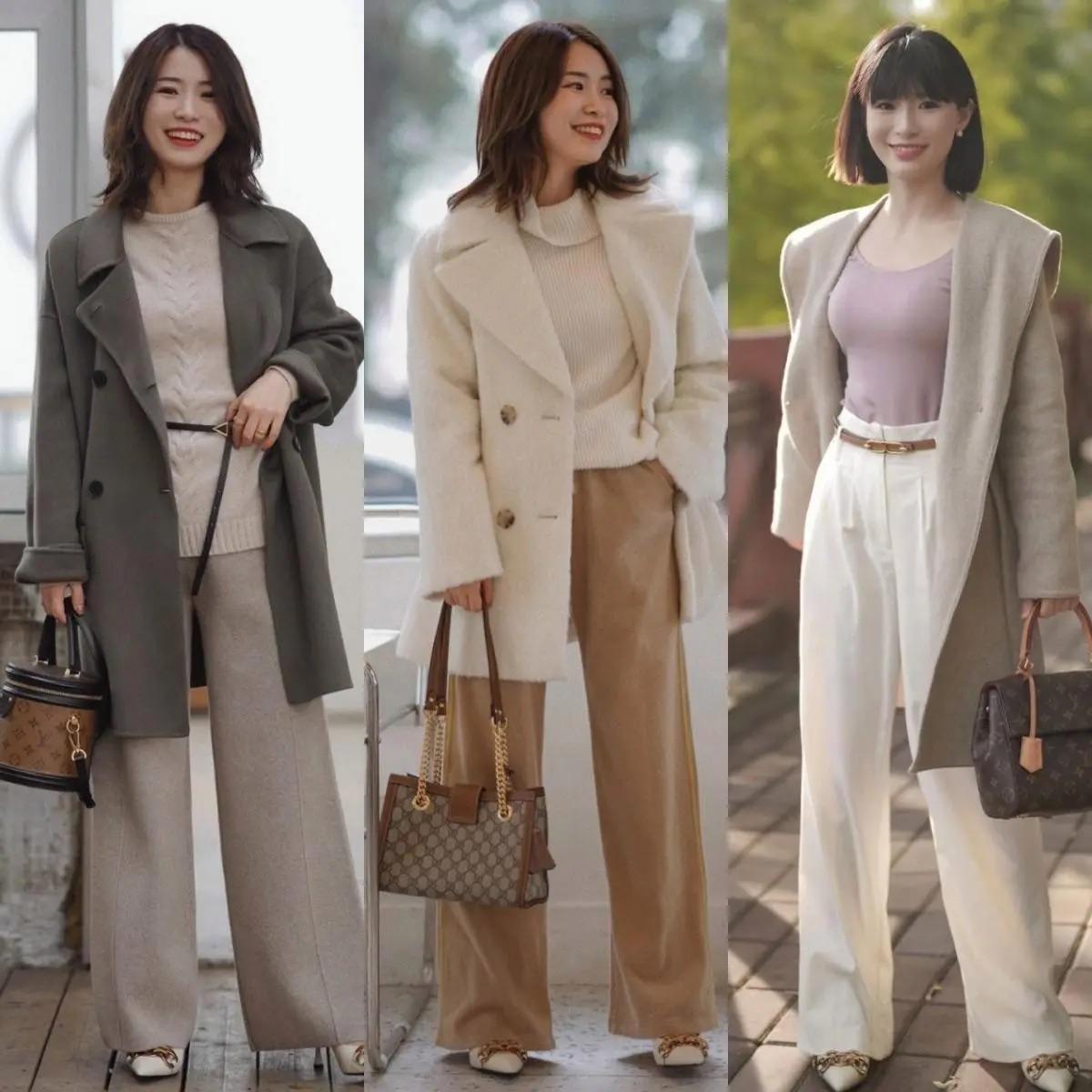 高腰的闊腿褲,儘量選擇比較垂墜又更加顯高的款式。高腰的闊腿褲、面料垂順、厚度更強,可以選擇加絨加厚的款式,保暖又顯腿長。