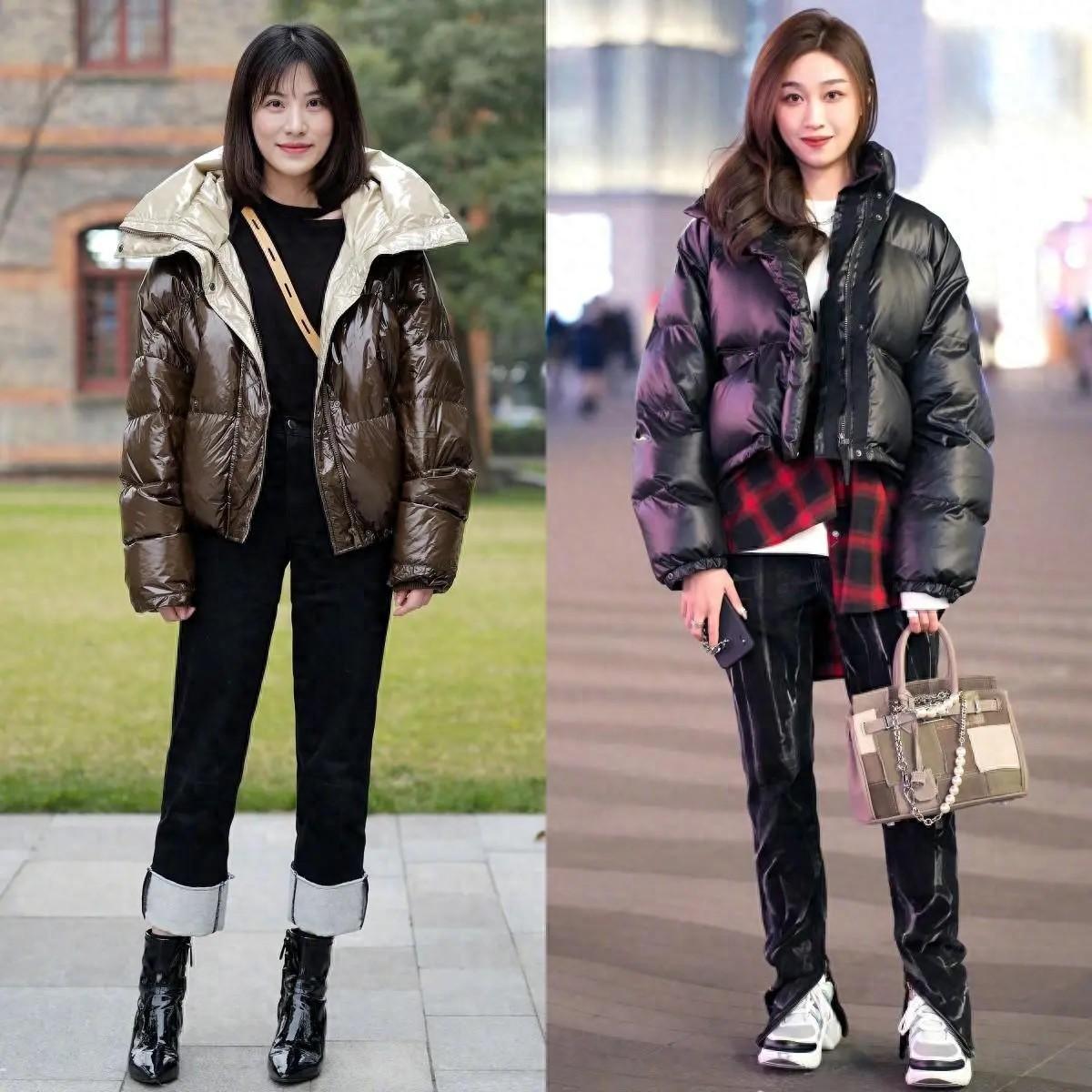 一種利落大方又顯高的穿着方式,這種整體比較修身的組合,會更加適合身材纖薄、輕盈的女人。輕薄的羽絨服,穿起來也很保暖,搭配修身牛仔褲不會顯得臃腫。