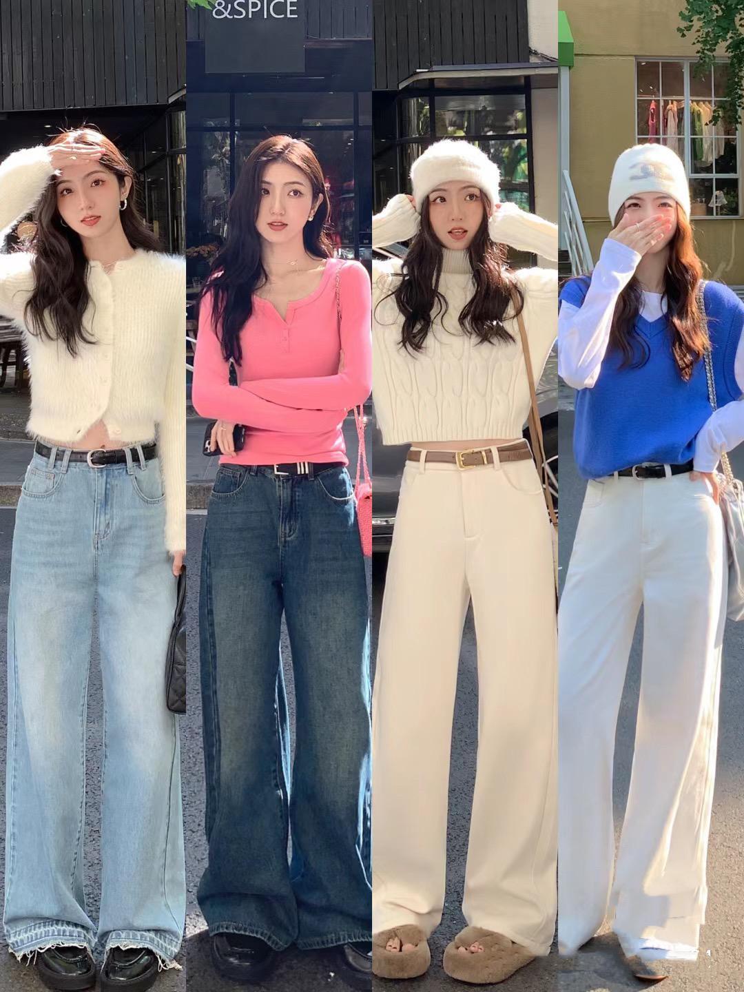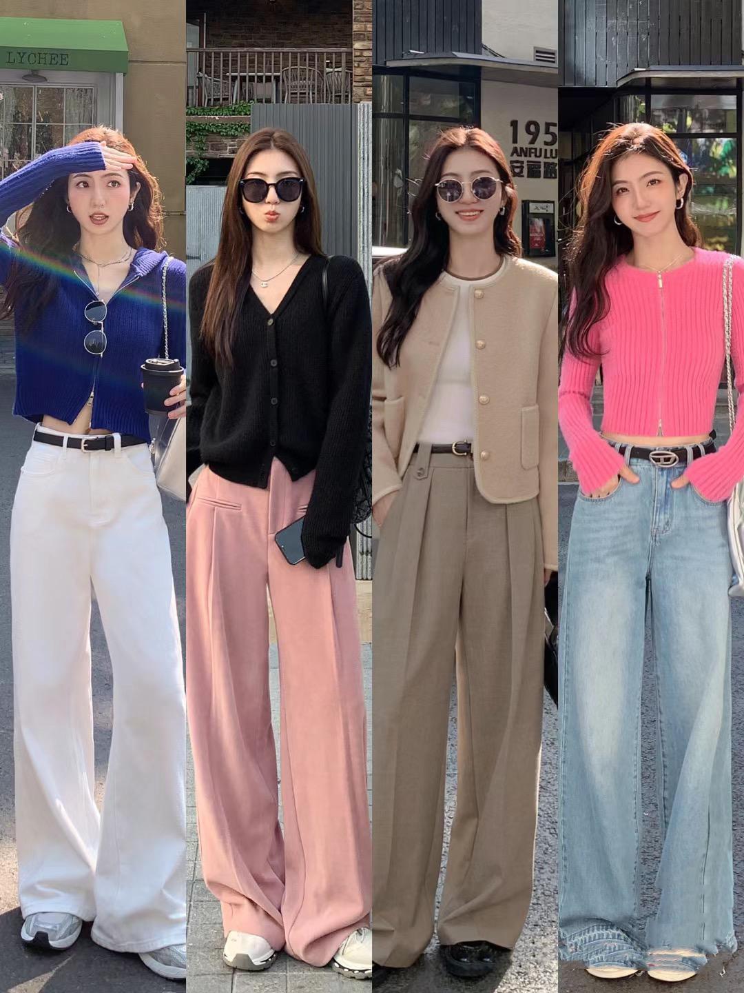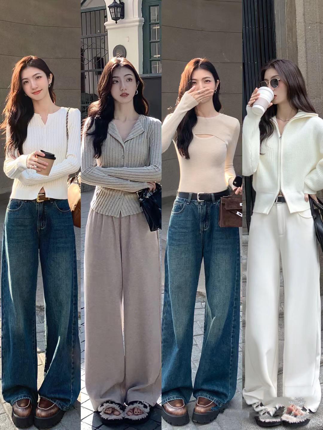 我們可以用高腰的牛仔闊腿褲來搭配針織衫開始,如果擔心腰線位置不夠明顯,還可以配纖細的腰帶或者皮帶修飾。腰帶的裝飾,塑造出更時髦耐看的效果,精緻又大方。