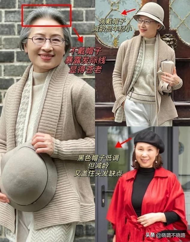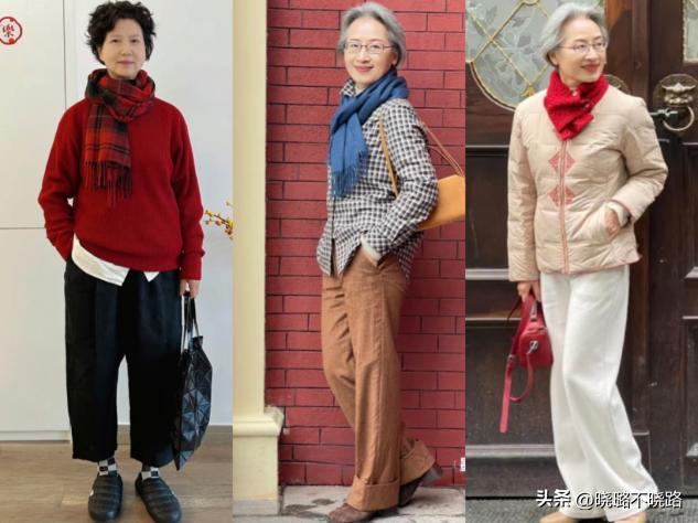 大齡女性不燙染頭髮,也可以從圍巾和帽子入手,給自己的整體穿搭營造更多的細節感,看着會更加時尚一些,比如上海奶奶們,會經常選擇一條稍微寬大一些的純色圍巾,或者整齊地堆疊在脖頸位置或者展開披在肩膀上,不管如何佩戴都可以增加造型感,使得上半身更加精緻洋氣。