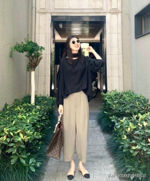 其實很多職場風的套裝中都能看到奶奶褲的身影,這是因爲上寬下窄的版型讓奶奶褲看起來非常利落,故而適合用來搭配職場風單品。