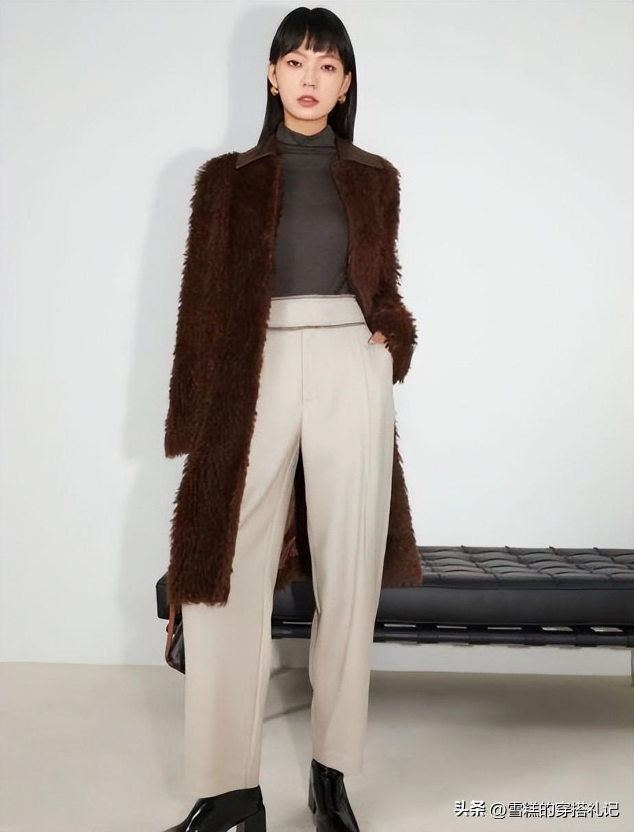 不選軟趴趴的面料是因爲一來軟趴趴的面料貼腿,很容易暴露腿部曲線,並不能去到一個良好地修飾效果。二來是因爲面料軟趴趴的在秋冬穿搭中,很難展現單品的質感,跟奶奶褲成熟的單品氣質也並不吻合。
