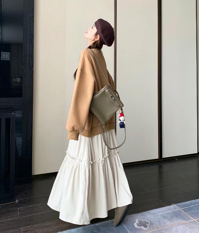 奶茶色的衛衣,很襯膚色和顯白,穿起來整個人也嫩嫩的,它的版型是寬鬆的,給足身材包容性,更顯瘦。選擇一條半身休閒長裙,那種鬆弛感的美,又怎能拒絕?