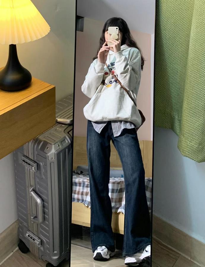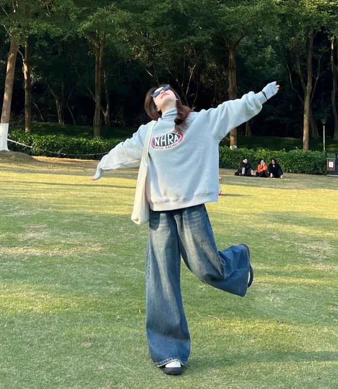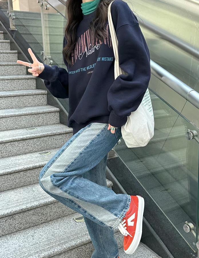 疊穿真的是yyds啊,基礎款字母衛衣+藍色襯衫,搭配水洗牛仔褲和運動鞋,這麼一整套看起來就減齡,充滿學院風的穿搭。