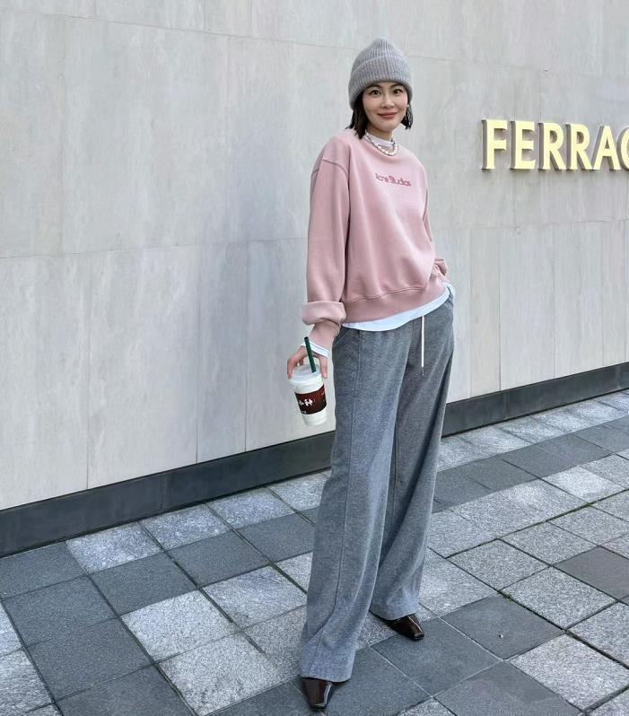 粉+灰的配色,也太好看高級了吧,淺粉色很百搭,也不挑膚色,與白色t恤疊穿在一起,很好營造層次與時髦。