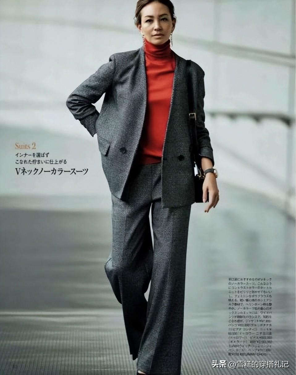 這種百分之五十的紅色穿搭比較保守,不挑那個年齡段,因爲顏色的風格可以通過配色來扭轉。