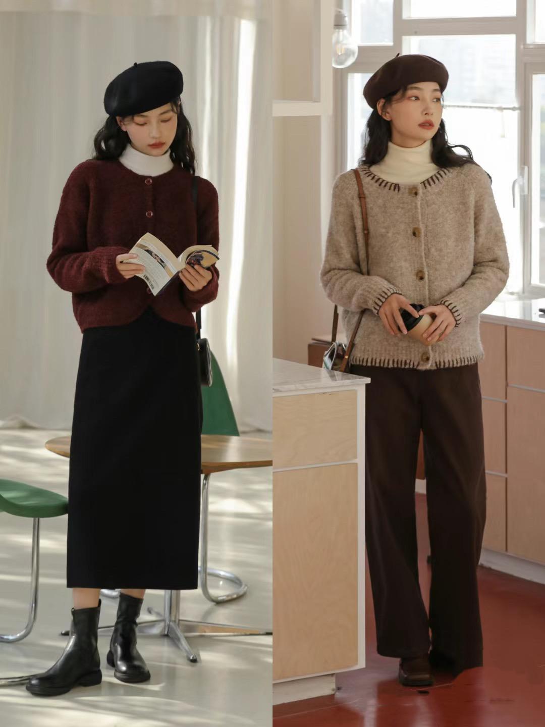 奶奶開衫款式簡單、設計低調、色彩柔和,更容易凸顯出溫柔的氣質。比如燕麥色或者磚紅色的奶奶開衫,穿起來不挑膚色,也會更加顯白一些。