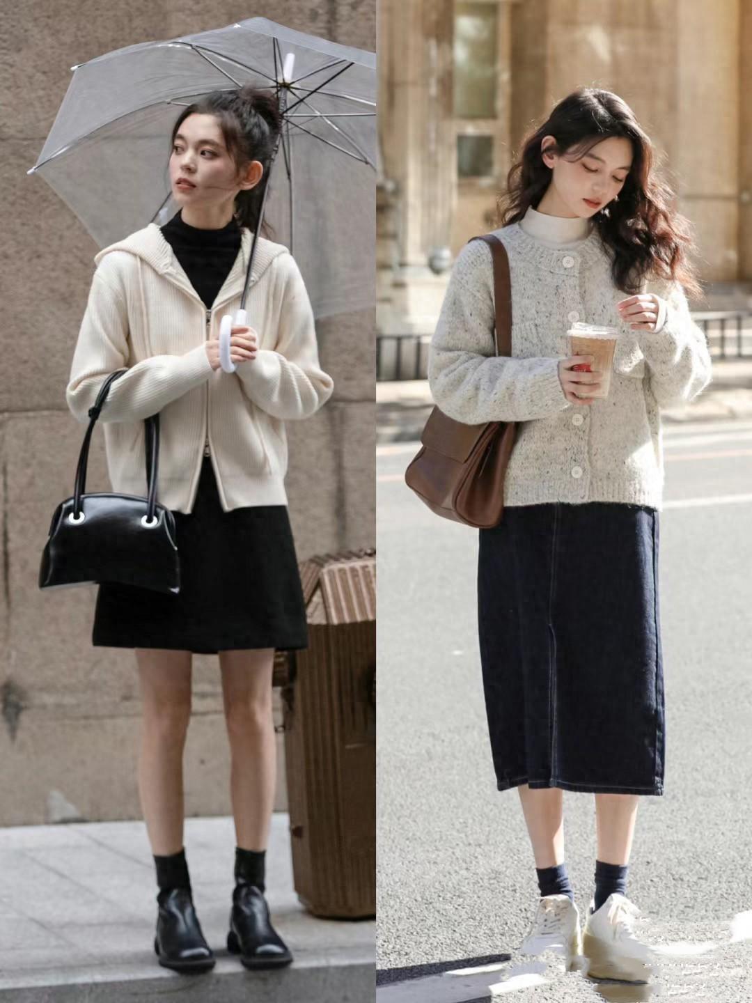 一種溫柔大方、又舒適自在的美,可以通過針織開衫+毛呢裙來呈現。細膩軟糯的針織開衫、可以搭配稍微寬鬆的版型,擁有更加時尚自然的美。