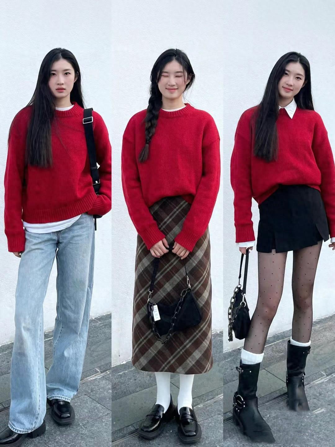想要新年氛圍感濃郁的穿搭,怎麼能少得了一件紅毛衣呢?紅色毛衣不像大衣那麼挑人、它更加實穿、也更具備了新年的氣氛。