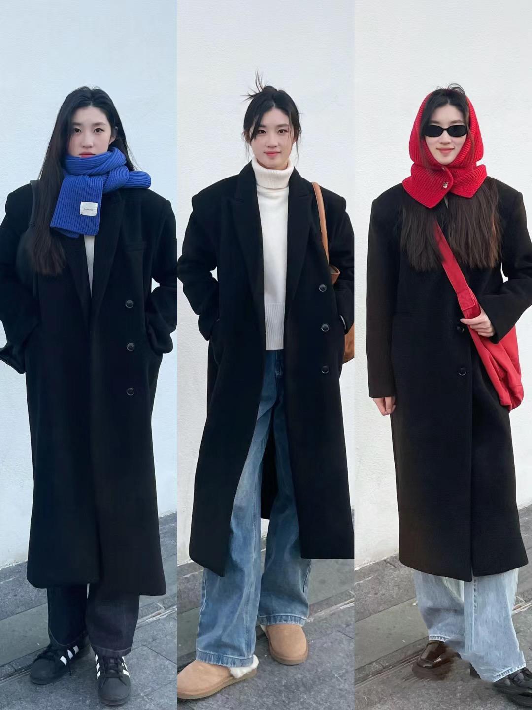 經典又高級的黑色長大衣,有一種自帶酷感的美。雙排扣的黑色大衣,稍微寬鬆且垂順的版型,擁有更利落大氣的美,我們直接用黑色大衣搭配高腰的直筒牛仔褲,就很顯氣質。