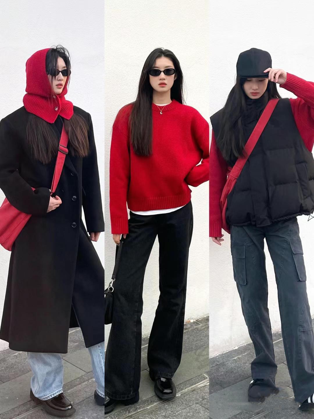 我們選擇新年紅毛衣的時候,可以搭配比較基礎的款式。因爲基礎款的紅色毛衣,會更自然的玩轉疊穿、也更加容易搭配。新年紅毛衣,看似驚豔的單品又很耐穿。