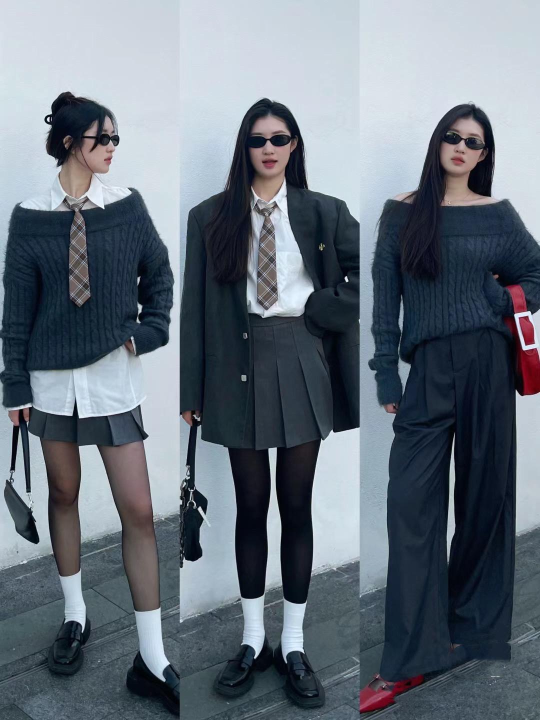 如果喜歡格雷系的穿搭,我們可以在休閒風的基礎上搭配比如個性的設計。簡簡單單的灰黑色西服外套,可以配高腰的百褶裙來穿着,簡單又時尚。