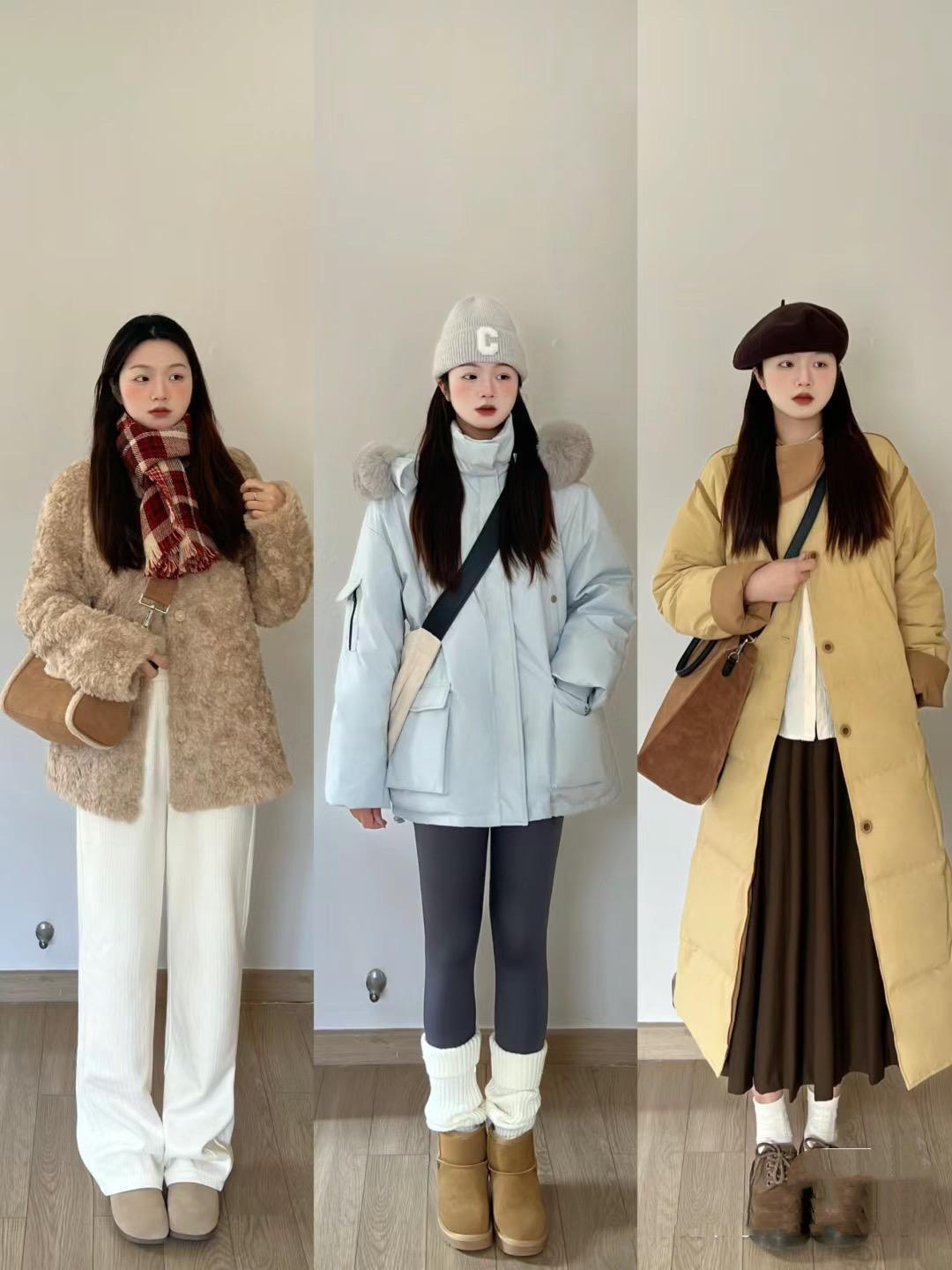 用H型的羽絨服來搭配緊身的鯊魚褲,可以表現出雙腿線條的纖細感。像這種修身的鯊魚褲,雖然看起來比較顯瘦,但我們只需要搭配加絨加厚的款式,就會更加保暖。