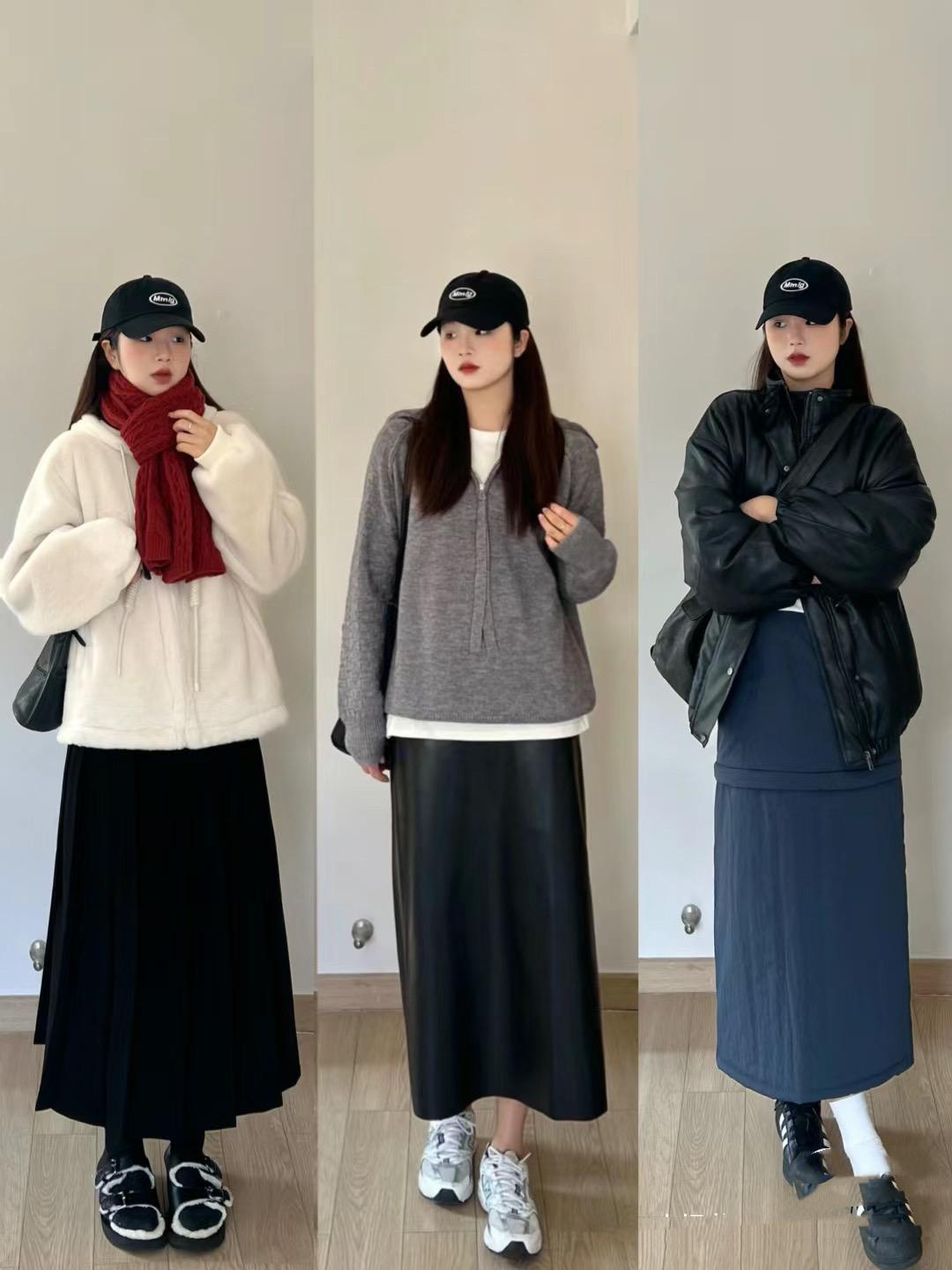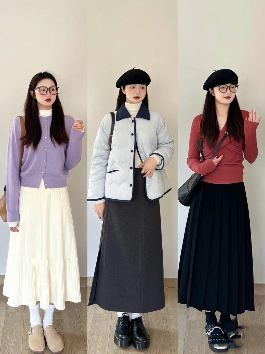 像這種糖果色針織衫,我們可以搭配高腰的半身裙。尤其是A字形的半身裙、上窄下寬的設計包容性也不錯。大量感的裙襬不僅顯得腰細腿長,還可以表現出腳踝的輕盈。