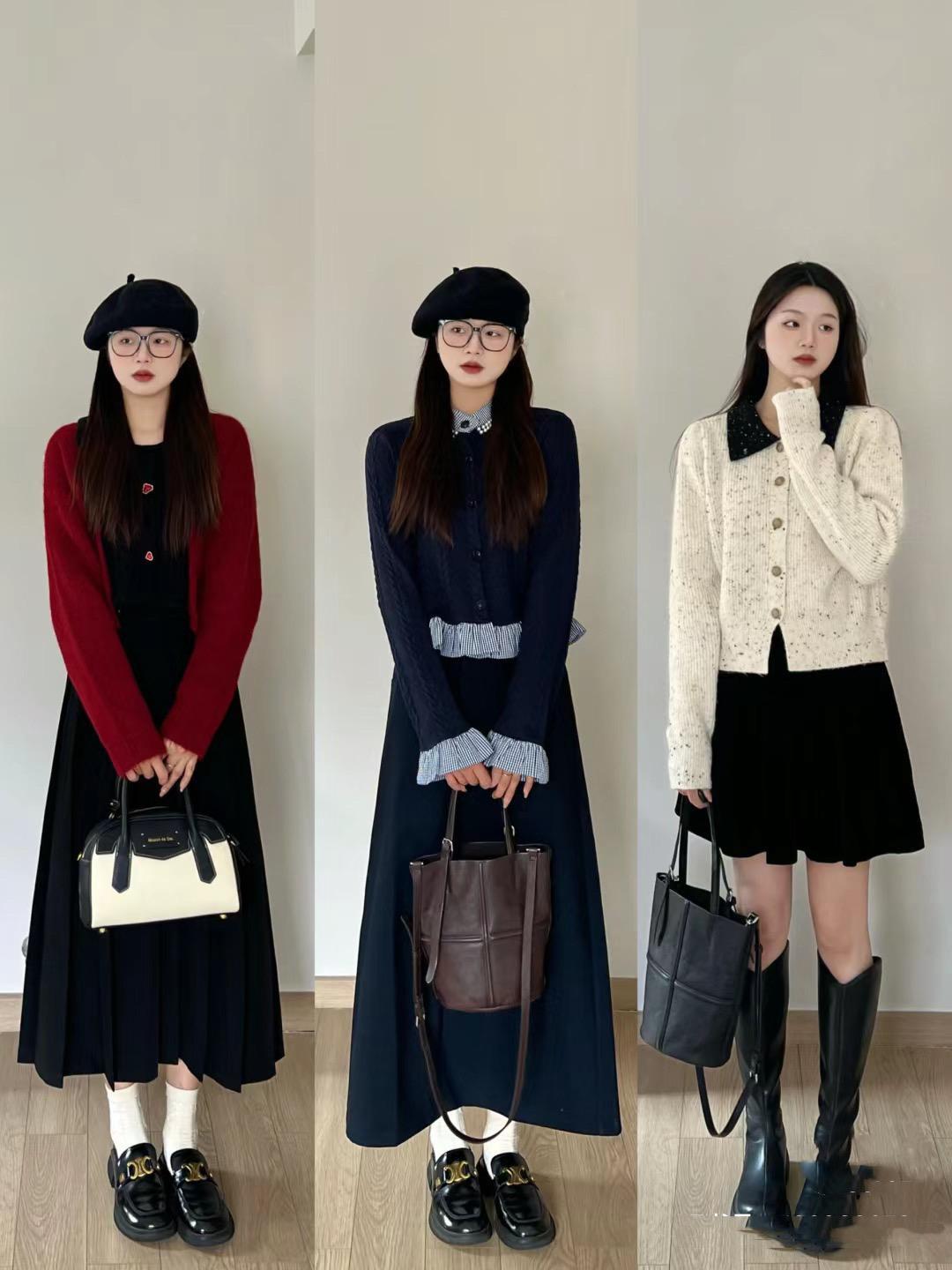 這位博主,不僅非常會搭配,在選款式也有自己的技巧。她更加喜歡一些日常基礎、但又注重細節感的服裝。比如木耳邊的針織衫,就比常規針織衫更加耐看。