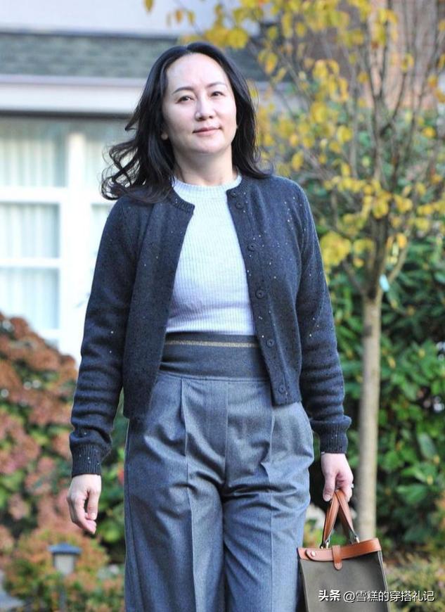 孟晚舟的褲裝穿搭其實並不多,但也可以發現幾乎每一條褲子都是垂墜感非常好的西裝材質,同時也兼具了一定的挺闊感,上身格外的利落,如果換爲柔軟的針織材質,分分鐘包裹在身上,顯得又胖又累贅。