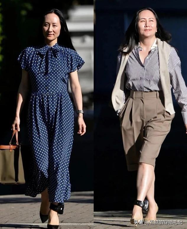 顯高顯瘦是每一個人都逃不開的穿搭話題,從孟晚舟女士的穿搭當中也可以看出 她的態度。一是藉助高腰線來延伸比例拉長個子,不管是連衣裙還是大衣,孟晚舟都會選擇帶有明顯高腰設計的單品輕鬆的穿出標準比例,二是通過高跟鞋來達到視覺上的增高效果,不管是穿裙子還是褲子,孟晚舟都非常喜歡穿鞋跟高度在五釐米附近的尖頭高跟鞋,通過高跟與尖頭的配合,瞬間拉長了腿長。