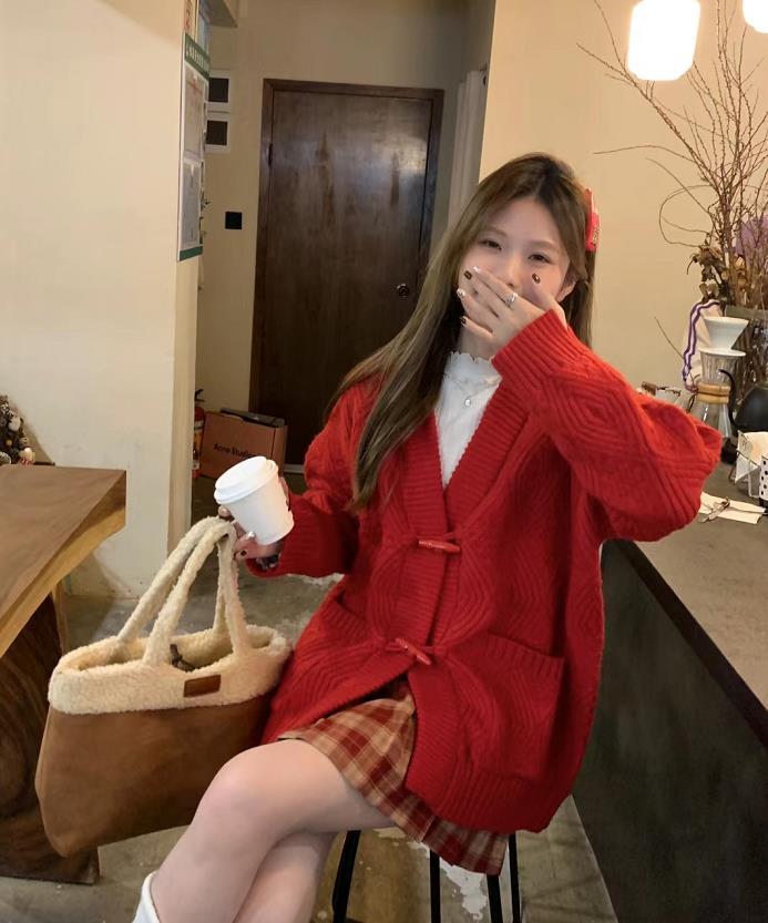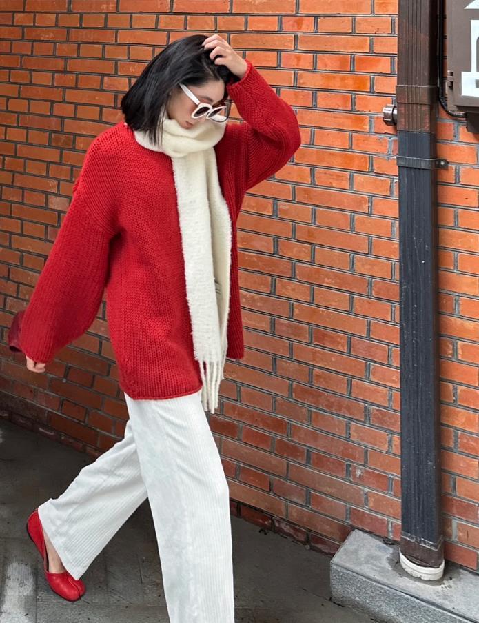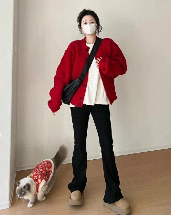 春季,開衫就是很受歡迎的單品啊,那種軟軟糯糯的質感,真的很難不愛,喜慶的紅色,大過年穿起來就對了。