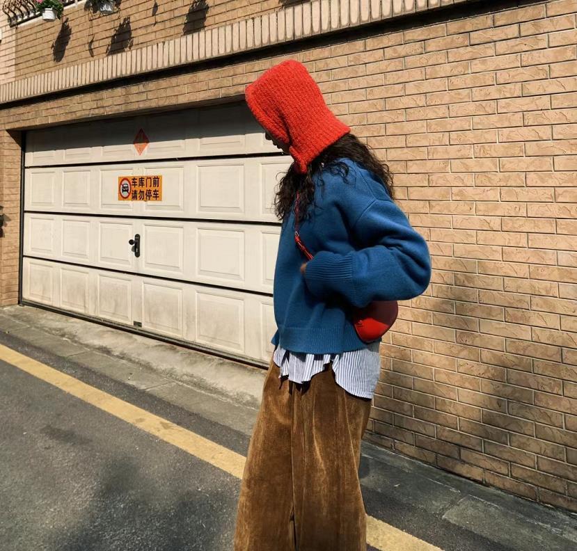 紅藍的配色組合真的絕了,感覺這兩個顏色好搭,巨顯白,藍色的基礎款毛衣+條紋襯衫,記得要稍微露出一點襯衫的下襬來,營造出層次又不失單調。